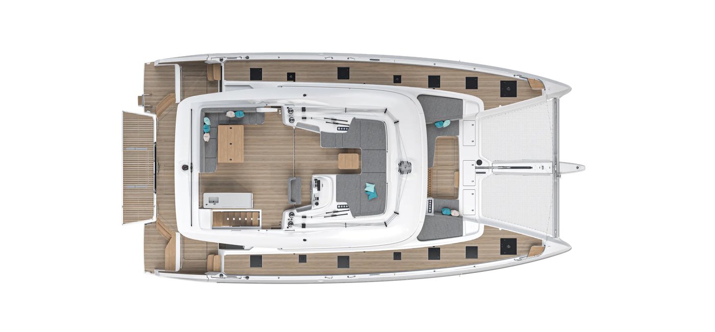 Step aboard onto the wide steps of our new launched Lagoon 60, Lady M!