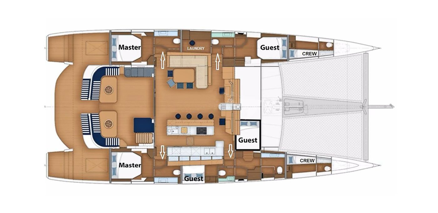 Natural wood tones and windows welcome the light as it bathes in and effortlessly create an atmosphere of how you should spend your quality time aboard - worry free.