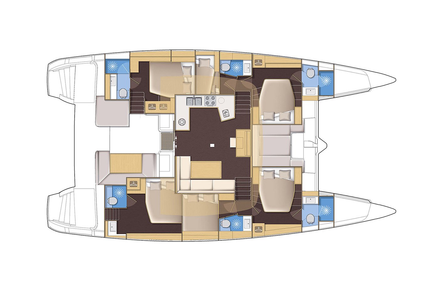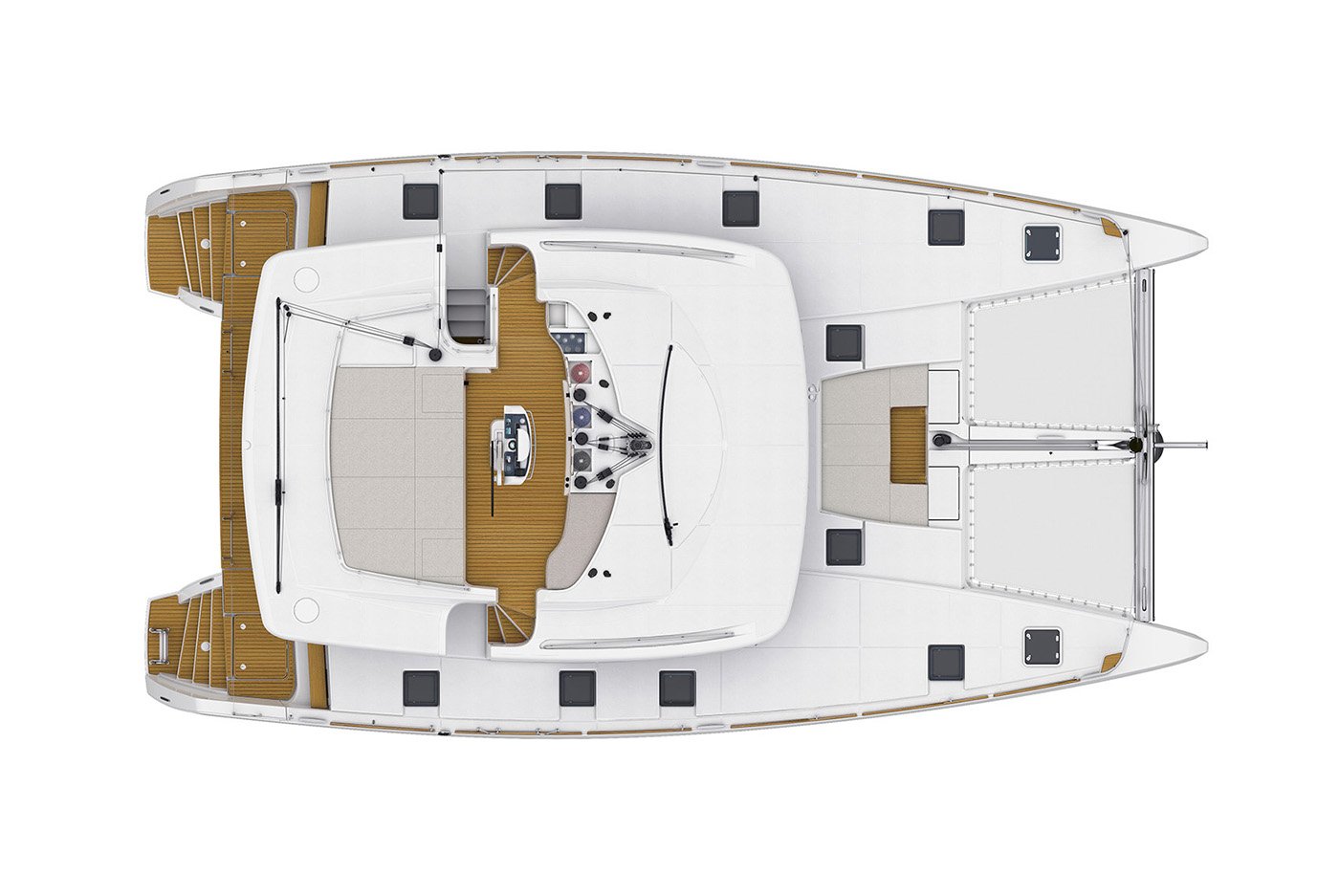 Lengthy discussions between VPLP yacht architects known for their offshore racing cats, the world renowned Italian Nauta design agency and the leading Lagoon shipyard resulted in this game changing yacht with diamond-shaped vertical bows, beveled hulls and a Gull-wing bridge deck marking a whole new era for cruising catamarans, an eye-catcher you cannot miss! Guests get to enjoy the natural continuity and intuitive flow between the roomy, contemporary interior and the elegant exterior spaces ideally designed for entertainment and socializing!