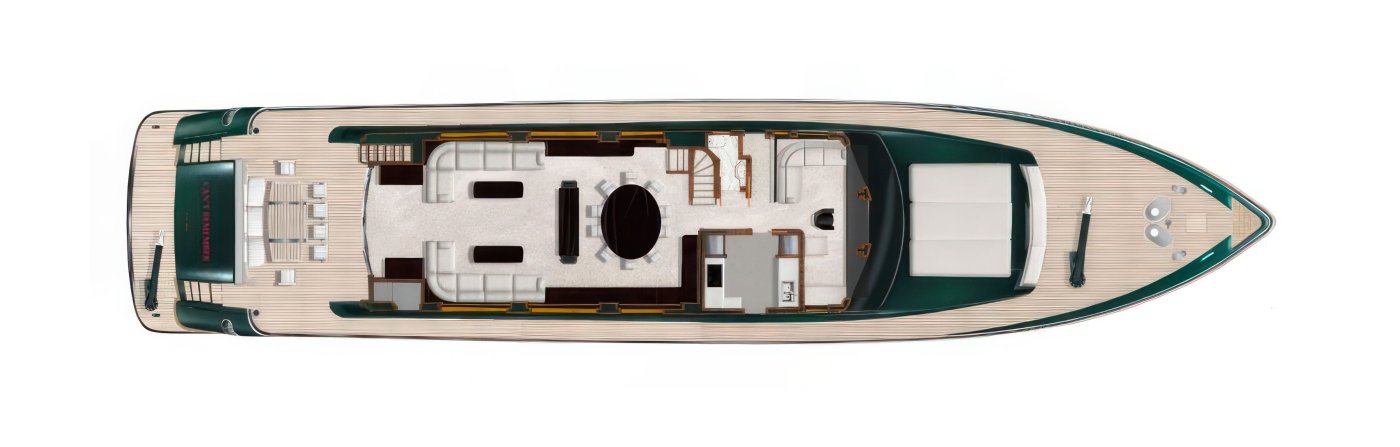 Can’t Remember has six staterooms all with en-suite facilities, a unique choice for families as she can accommodate with comfort up to 12 guests! Her main salon, separated from dining room with a sleek black fixture, boasts selected furnishings and large windows for incredible views. Characterized as the ultimate pleasure point and designed with comfort and entertainment in mind, she has many options for entertaining both indoors and on her exterior decks.