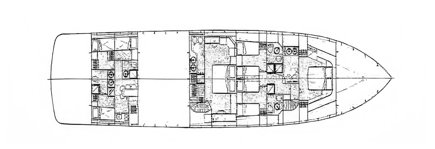 12 guests in 1 Master Suite , 1 VIP & 2 twin cabins each with an additional single upper pullman, all with en-suite facilities and individual A/C control - 1 Double convertible to playroom on Main Deck.