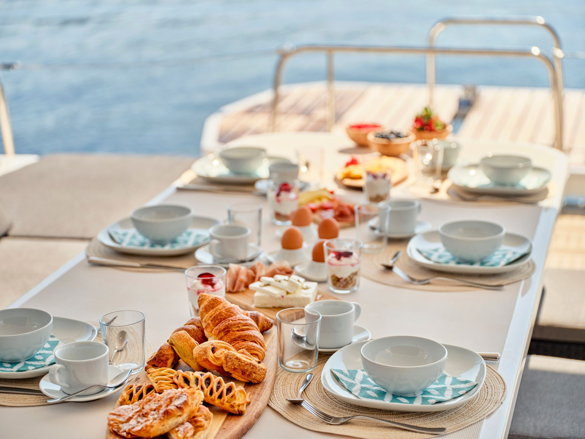 Her high-end interior touches and her natural sunlight in her saloon and rooms are meant to evoke feelings of peace and harmony. She features 4 double cabins with ensuite facilities and accommodates up to 8 guests. Her excellent crew of three will offer you an unforgettable experience on board. Enjoy your magnificent days and the moonlight nights at sea!