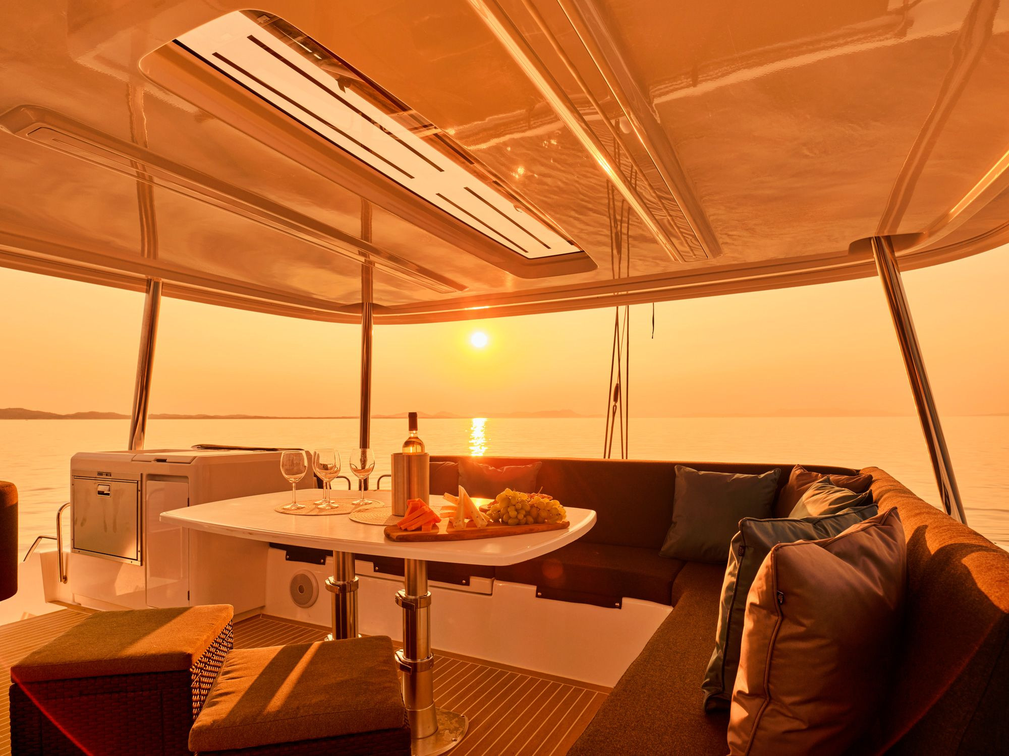 The transoms are no longer just a circulation area but a real living space at anchor, for cooking in the outdoors or simply for dreaming with your feet in the water...
