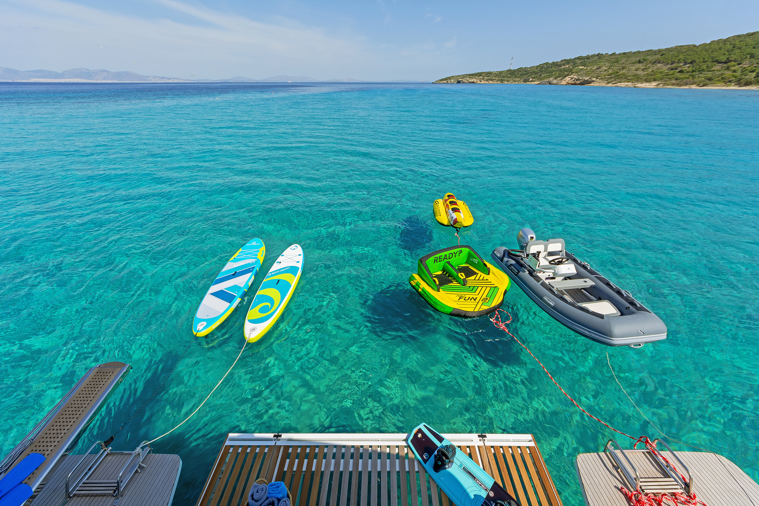 With spacious indoor and outdoor areas, as well as a stunning water-level balcony and swimming platform, EFFIE STAR is perfect for family and friends seeking both entertainment and quiet moments of privacy while cruising through the Greek Islands.