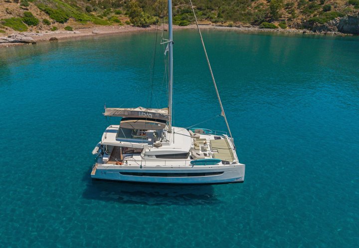 Libra is a catamaran that stands out for its exceptional design, offering an impressive sense of space both indoors and outdoors.