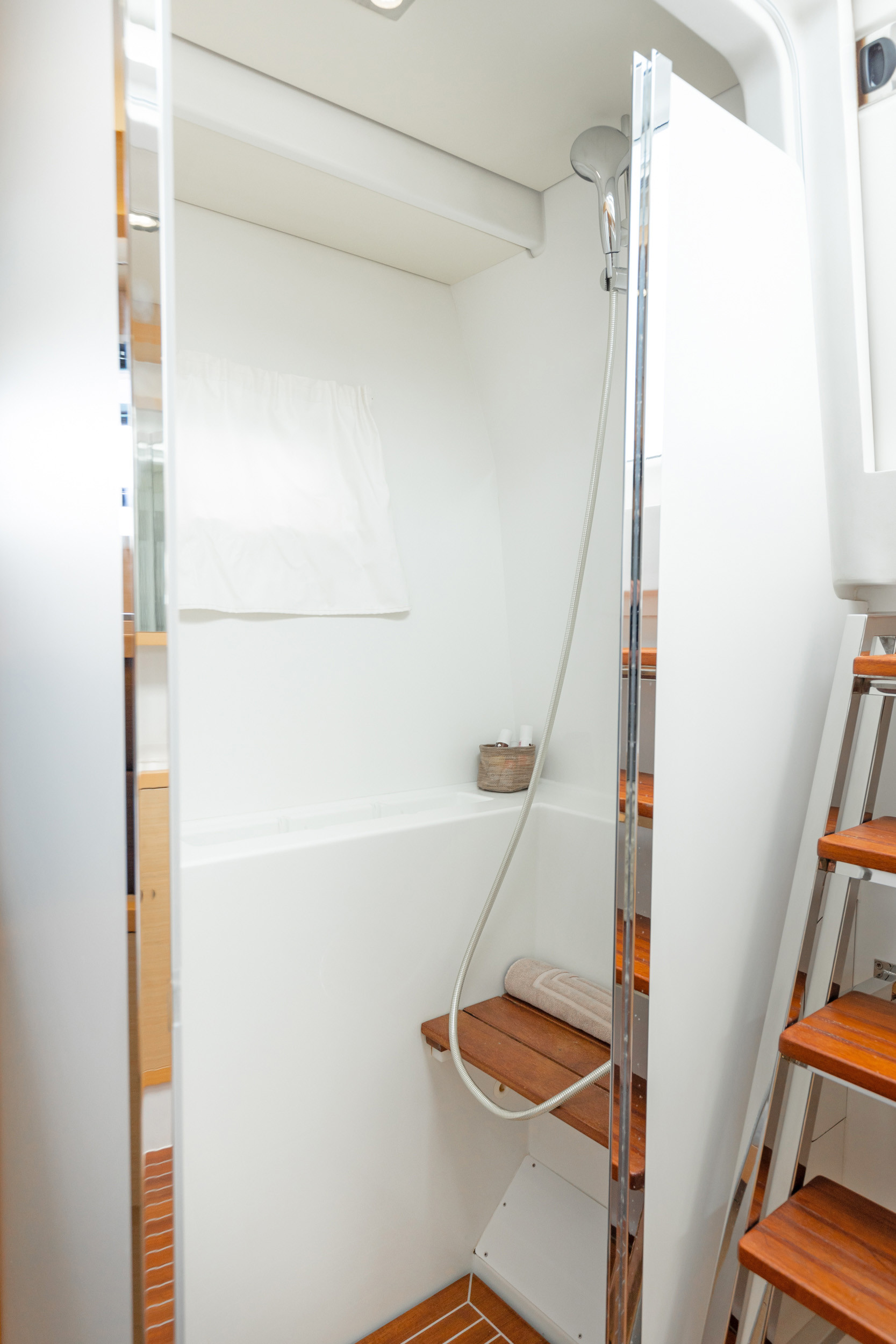 Her layout is unmatched by any other catamaran of her size and her living space is phenomenal, including 4 Queen cabins fully air-conditioned with en-suite facilities, an impressive sense of space in the saloon and galley, ample lounging space on the flybridge and more roominess than you could ask for dinning and lounging in the vast aft cockpit. Indulge yourself in the art of hospitality on a yacht considered by many the ultimate voyager’s catamaran!