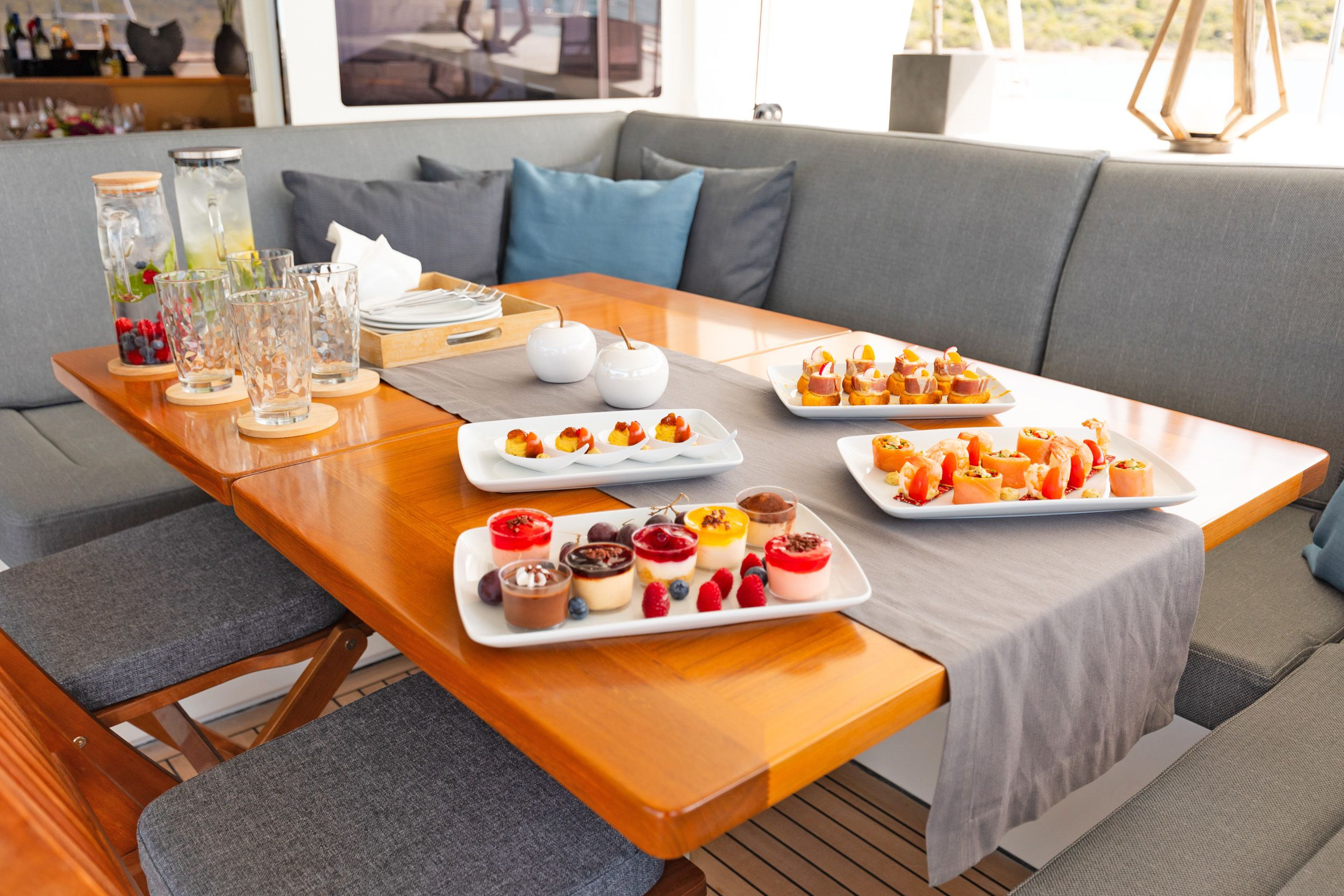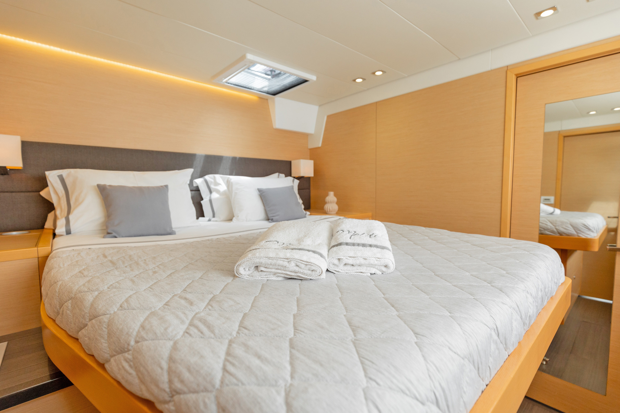 Meliti‘s genealogy comes from super yachts combining the world-renowned talents of the architectural firm VPLP and the design consultants Nauta and boasting all of the advanced features developed by the famous Lagoon Shipyard in one luxurious deep-water catamaran that will definitely exceed your expectations in terms of comfort, handling and style!