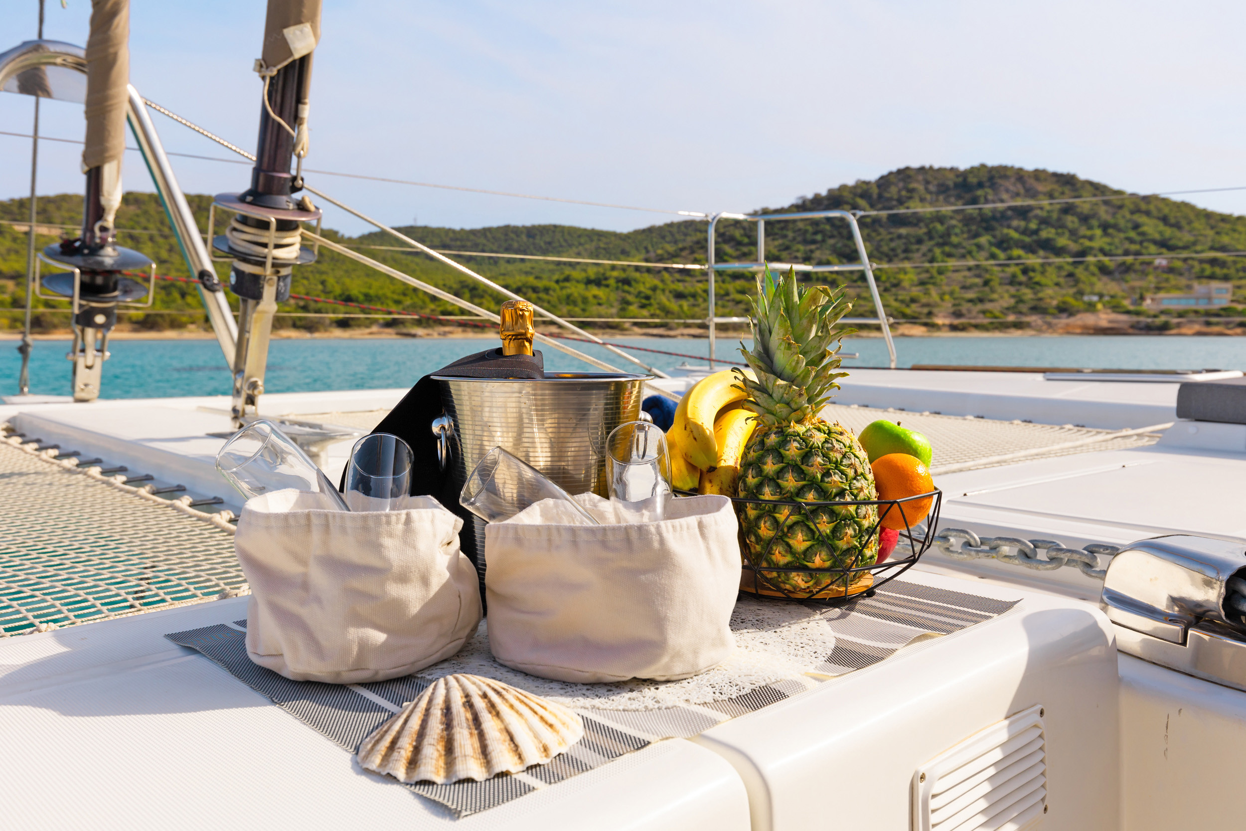 Meliti is our Lagoon 560, a catamaran available for crewed charters throughout Greece. With 4 cabins, it is perfect for groups of up to 8 guests.