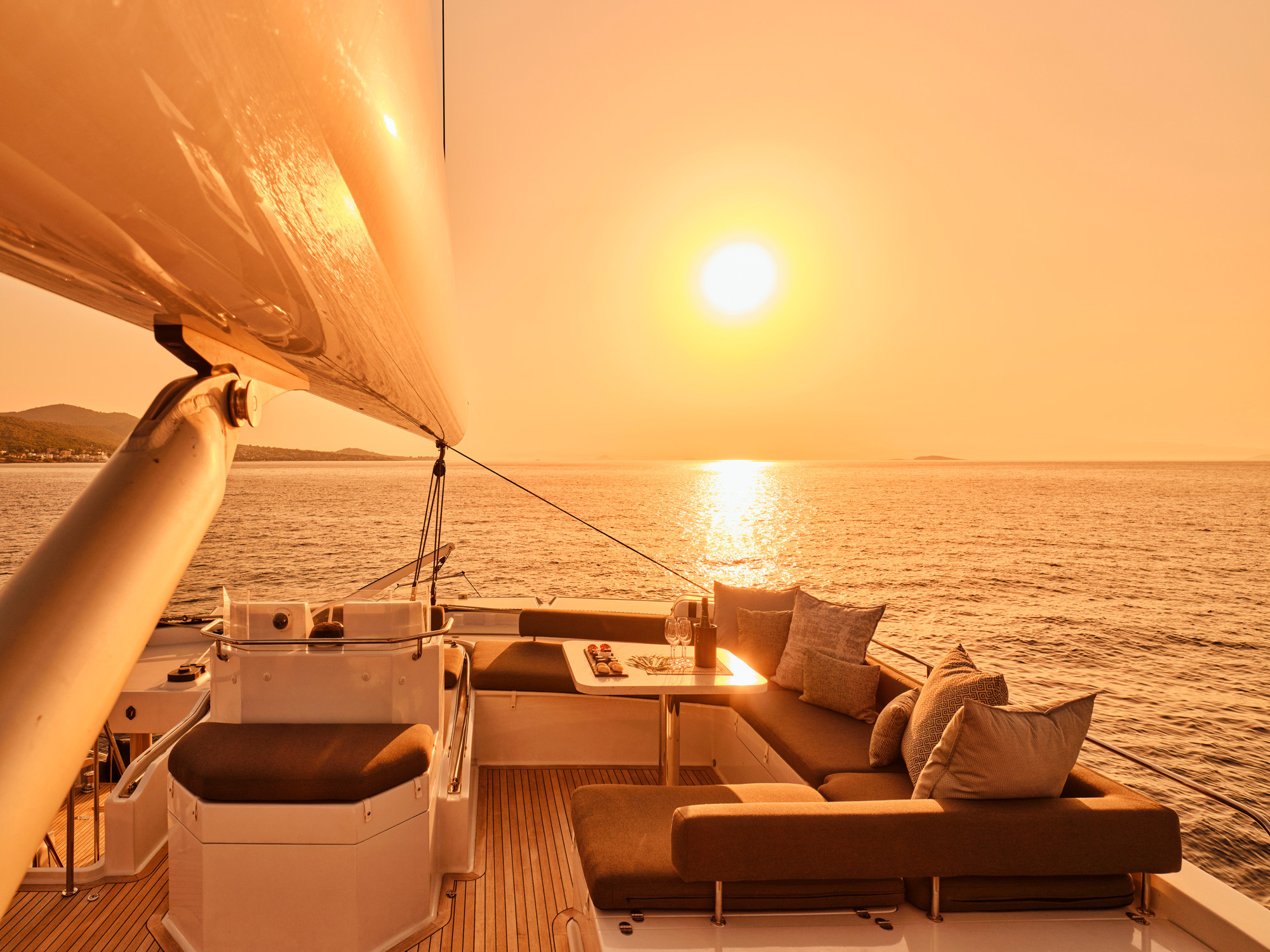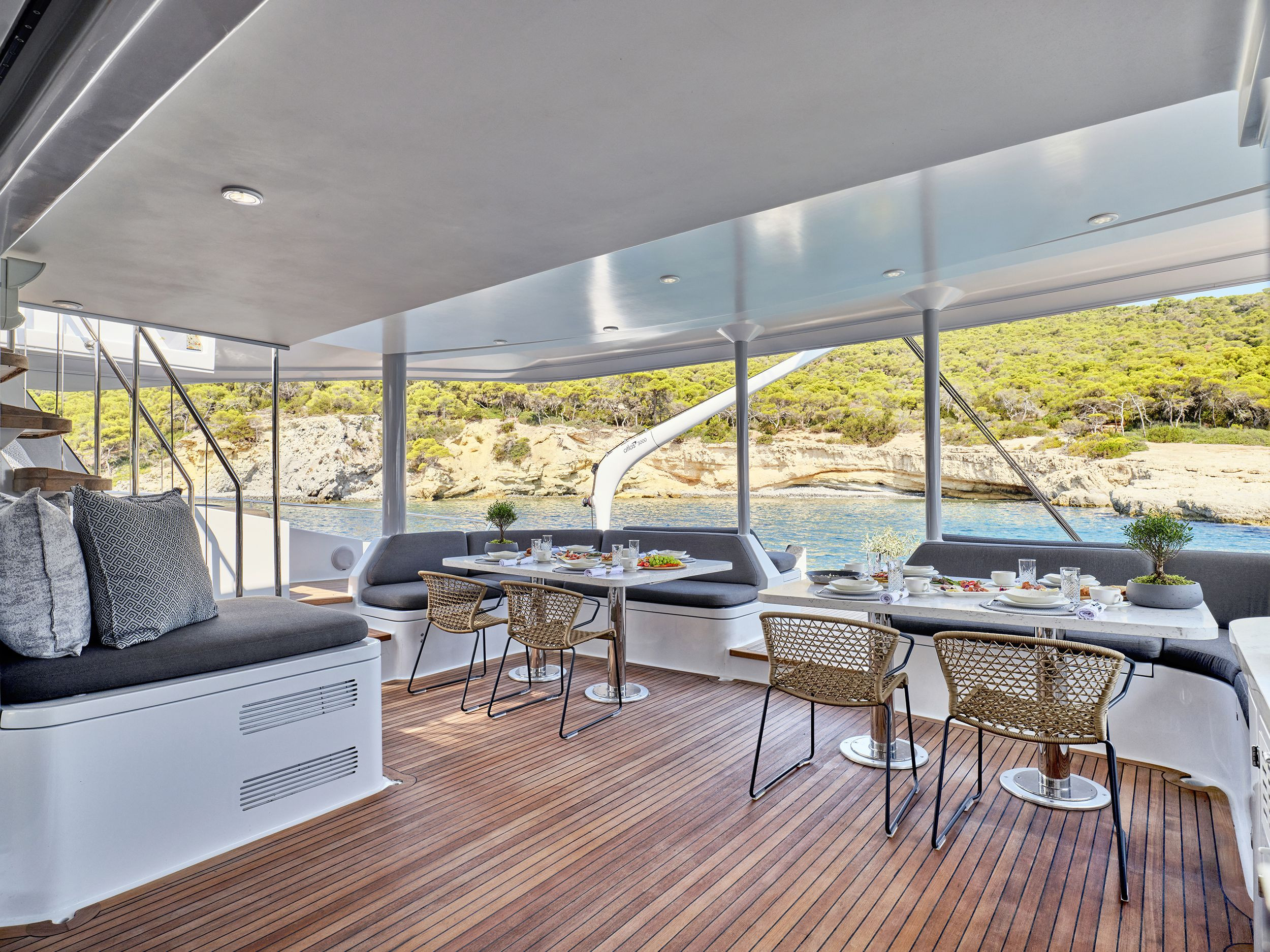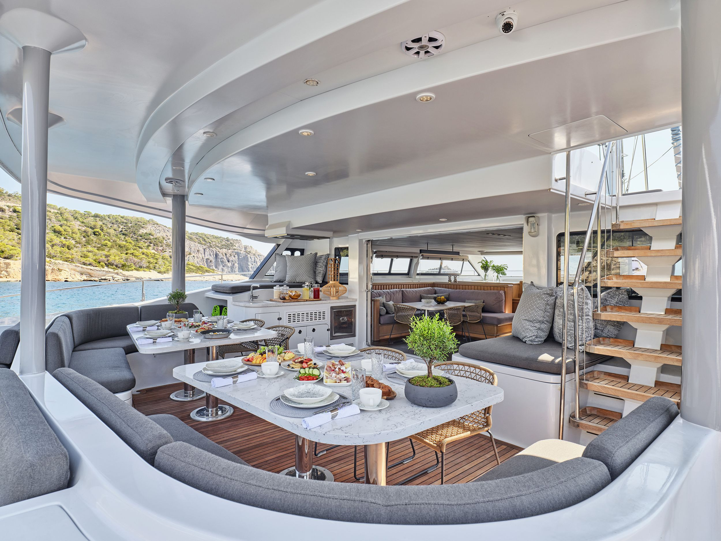 Natural wood tones and windows welcome the light as it bathes in and effortlessly create an atmosphere of how you should spend your quality time aboard - worry free.