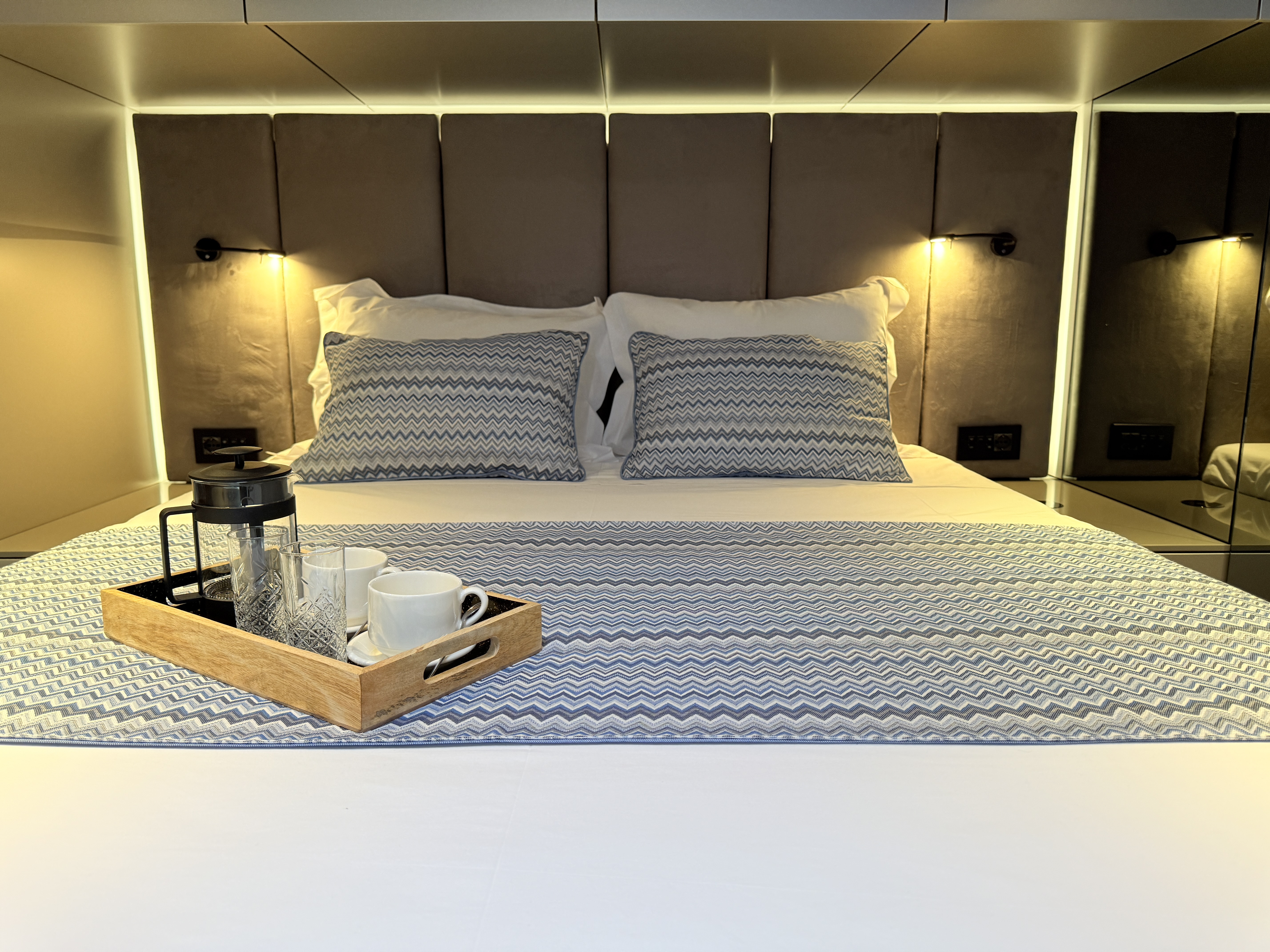 SERENITY accommodates up to eight guests in its intelligently designed and spacious 4-cabin layout.