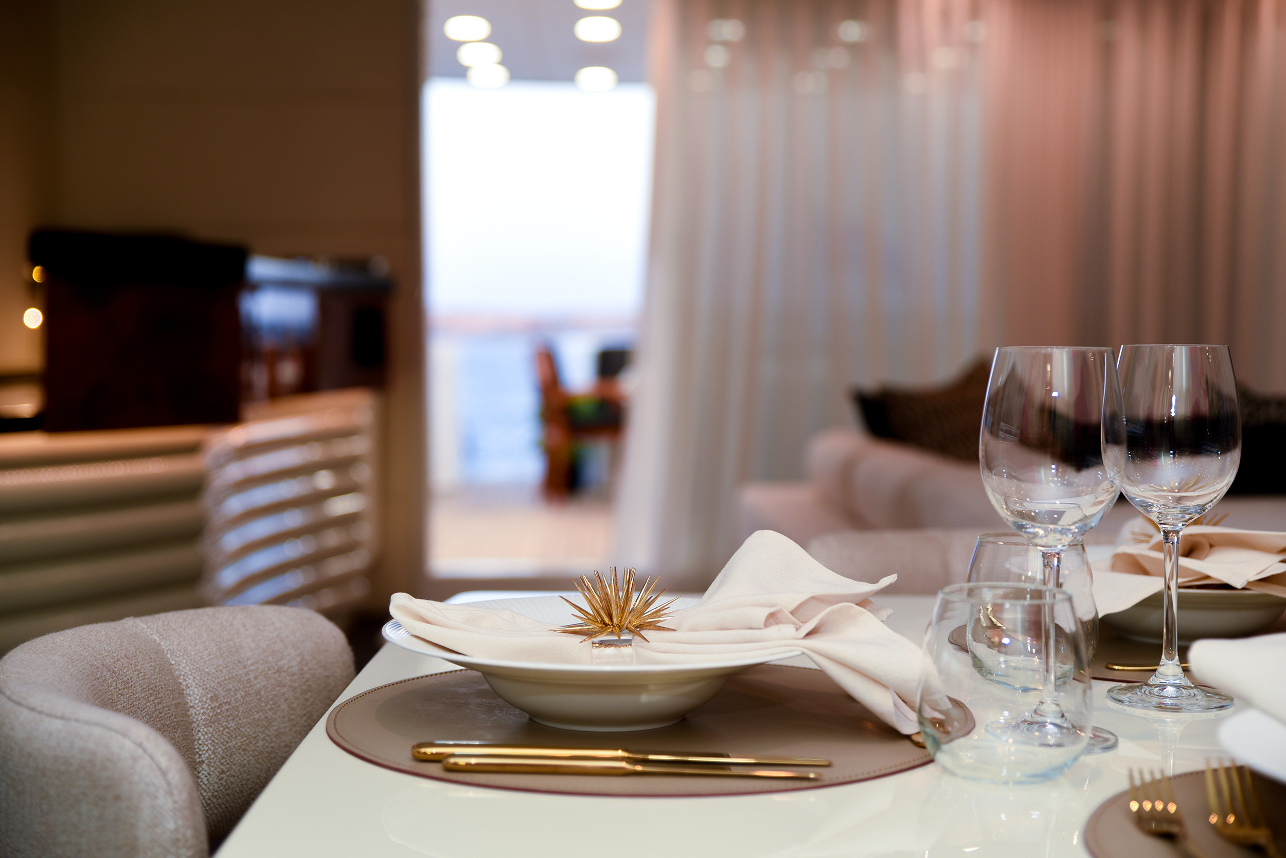 She boasts a swim platform, making accessing the crystal-clear waters of the Mediterranean effortless. BROOKLYN is the perfectly sized vessel for family holidays on the water boasting five spacious staterooms that can be configured to sleep up to 10 guests. Her voluminous full-beam Master Suite on main deck with sauna includes a luxurious en-suite bathroom with a sauna and a separate area that can be used as an office . Her remaining VIP, Double, and Twin Staterooms ensure guests enjoy the height of luxury, privacy, and exclusivity.