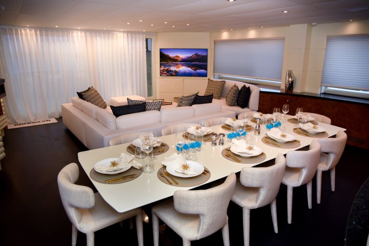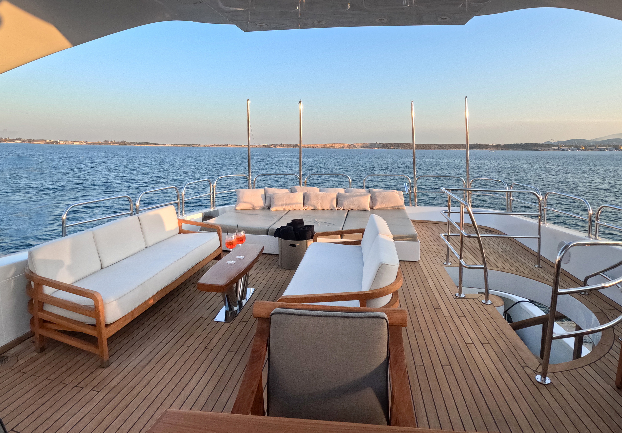 Impressive leisure and entertainment facilities includes a sun deck with custom furniture and a large sun pad on the bow which make her the ideal motor yacht for socializing and entertaining with family and friends.