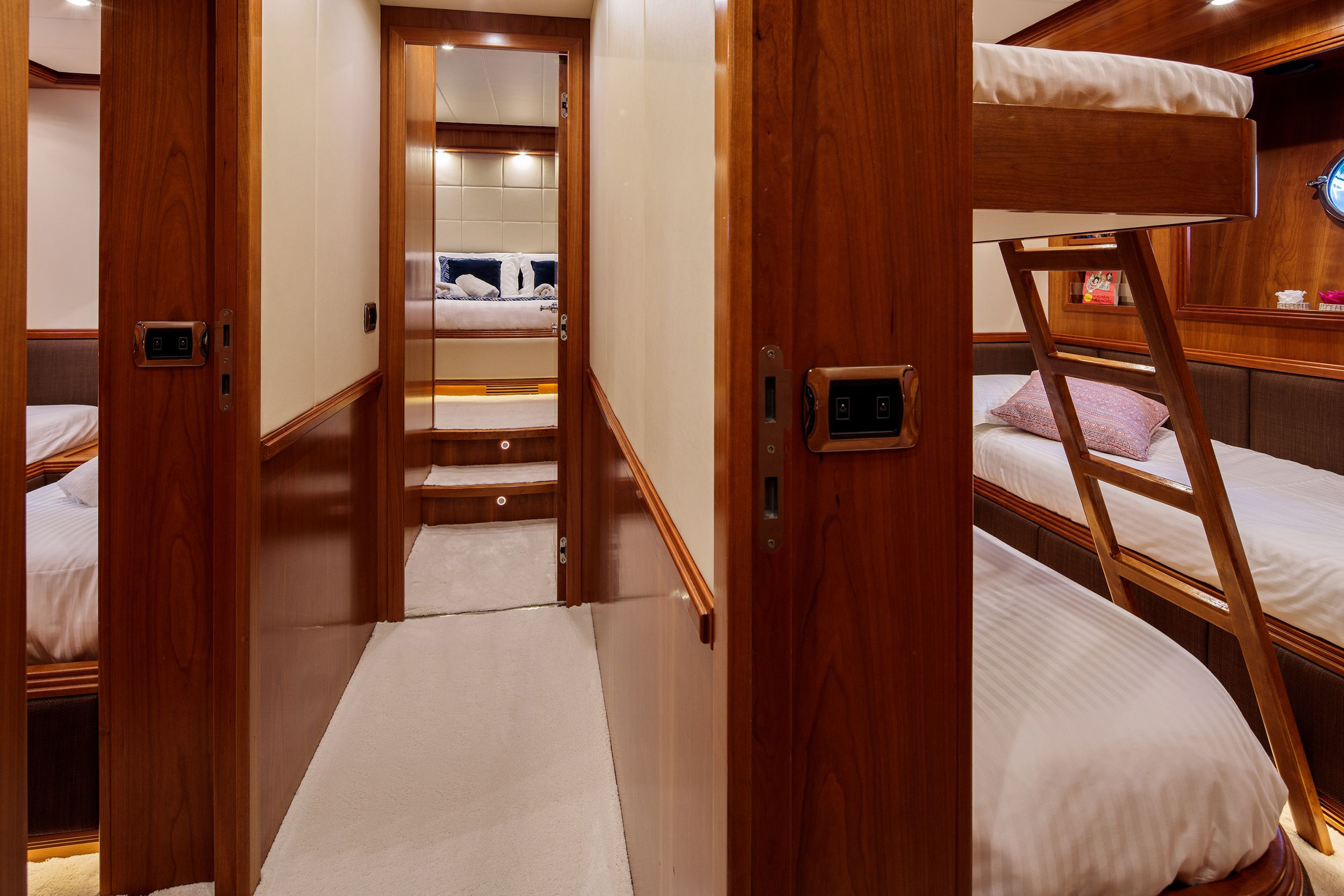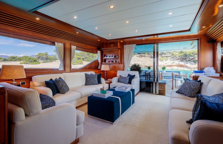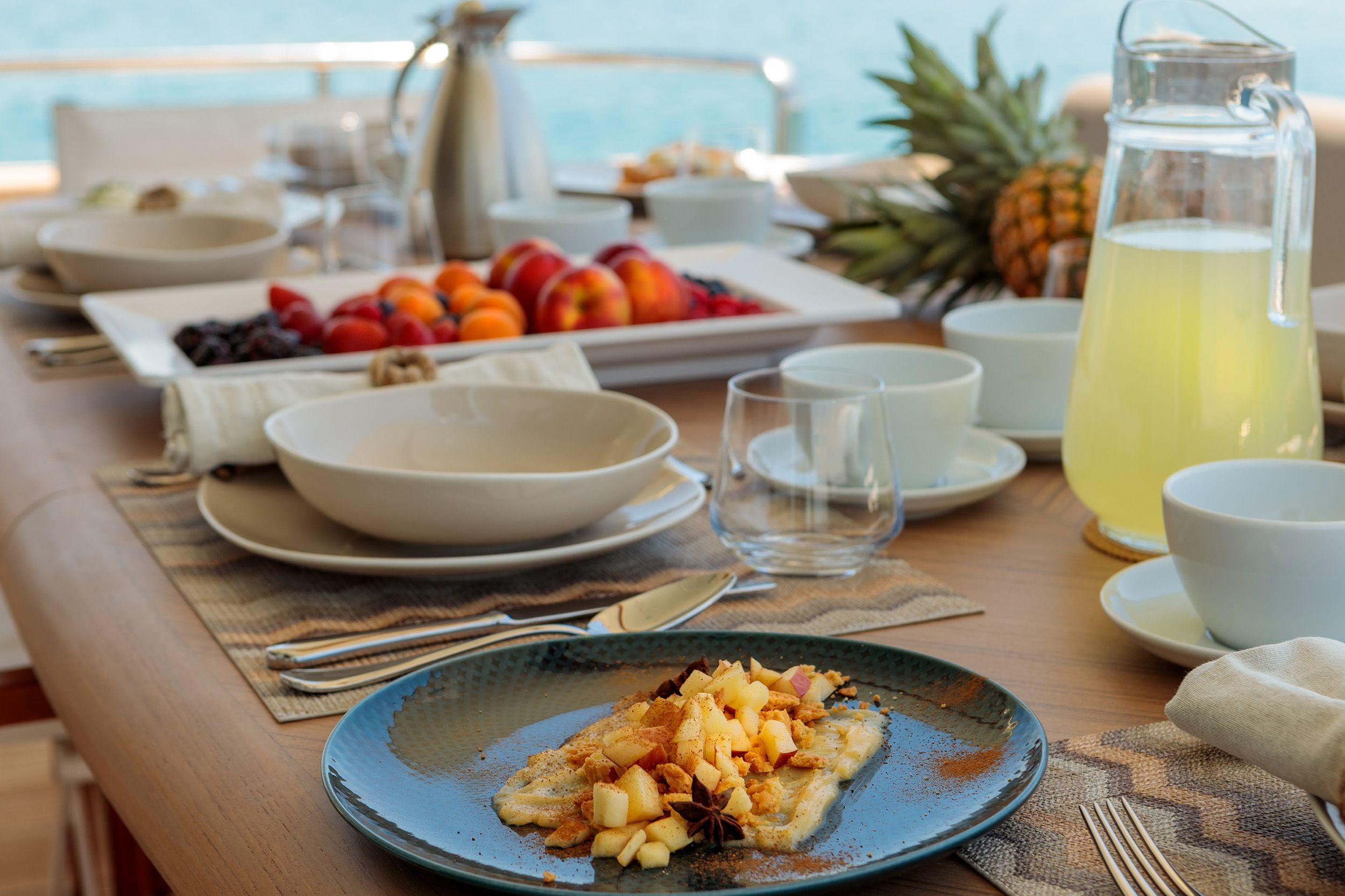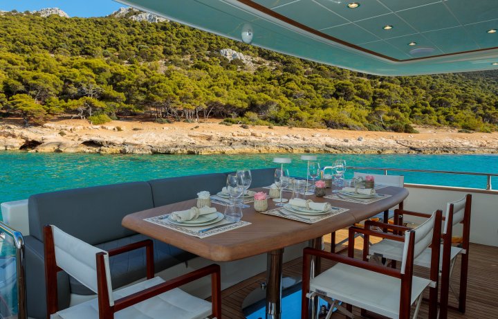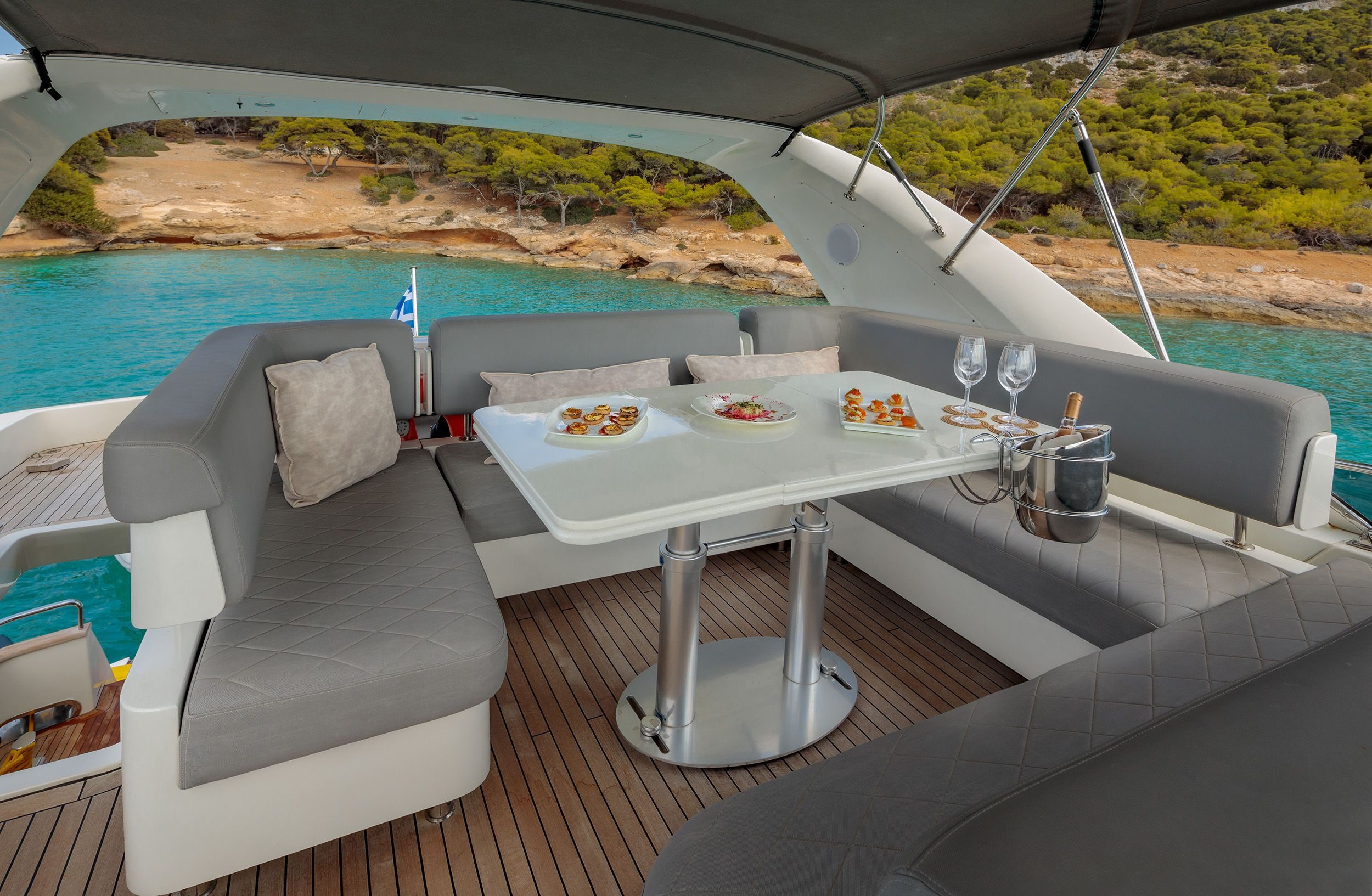 The yacht is a floating heaven. Inside, four spacious cabins in the lower deck comfortably accommodate 10 guests.