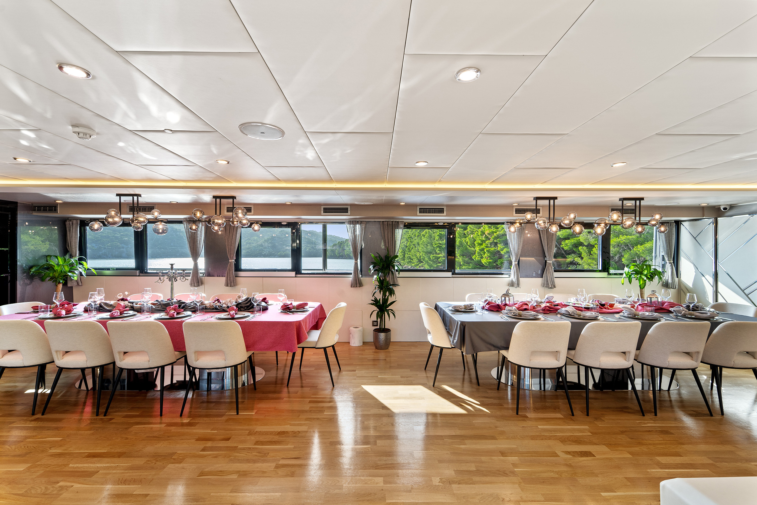 For guests who love water activities, FREEDOM features 2 jet skis, 2 SeaBobs, water skis, a wakeboard, a tube ride, a Ringo ride, 4 paddleboards, 2 electric paddleboards Lamp , 2 E-foils, a canoe, and a waterslide to choose from. FREEDOM also features a cinema and video gaming room, a sauna with a large shower, two open bars, and a spacious indoor dining area.