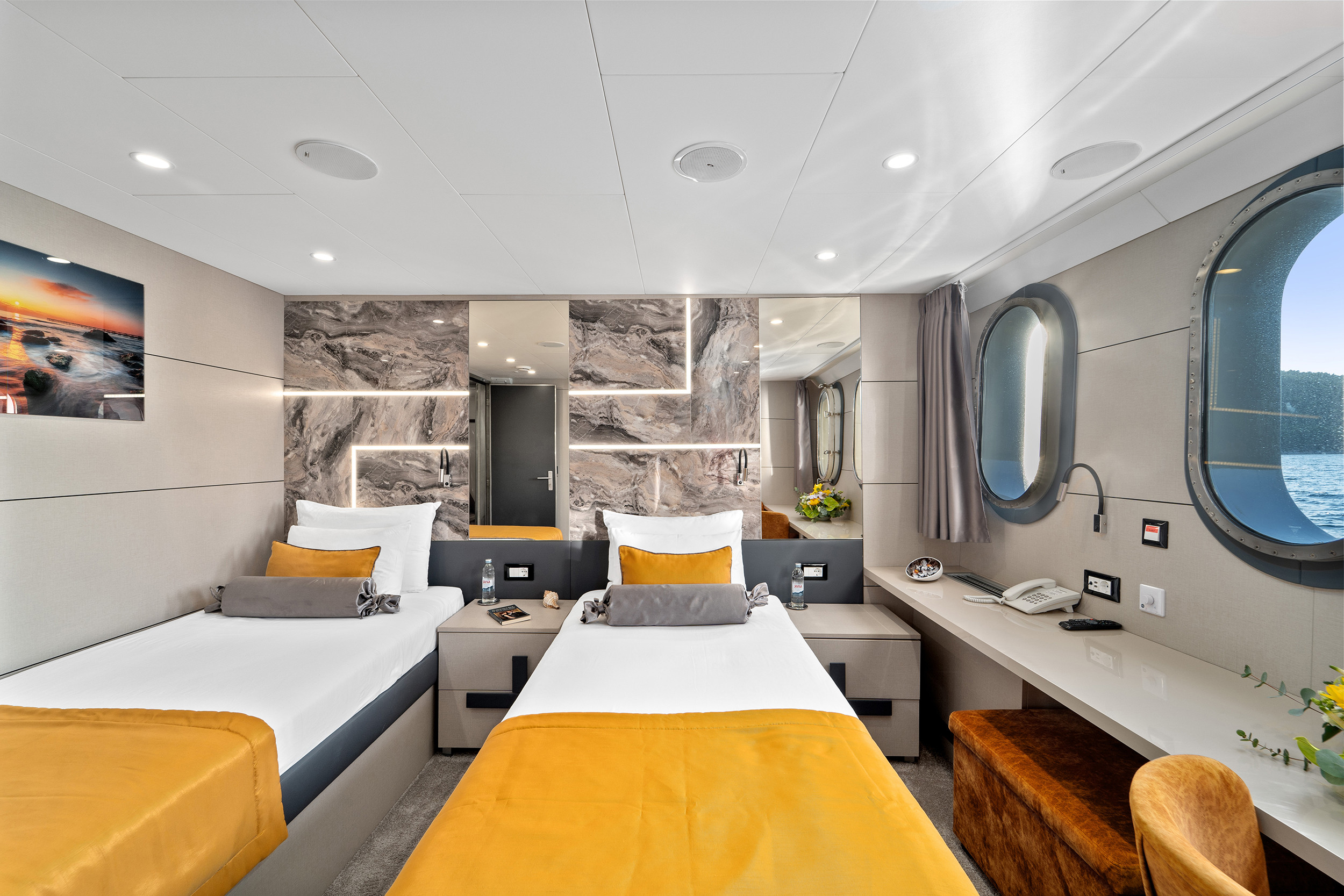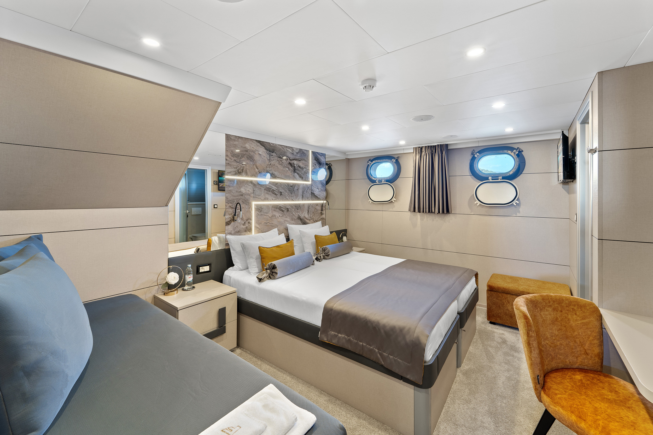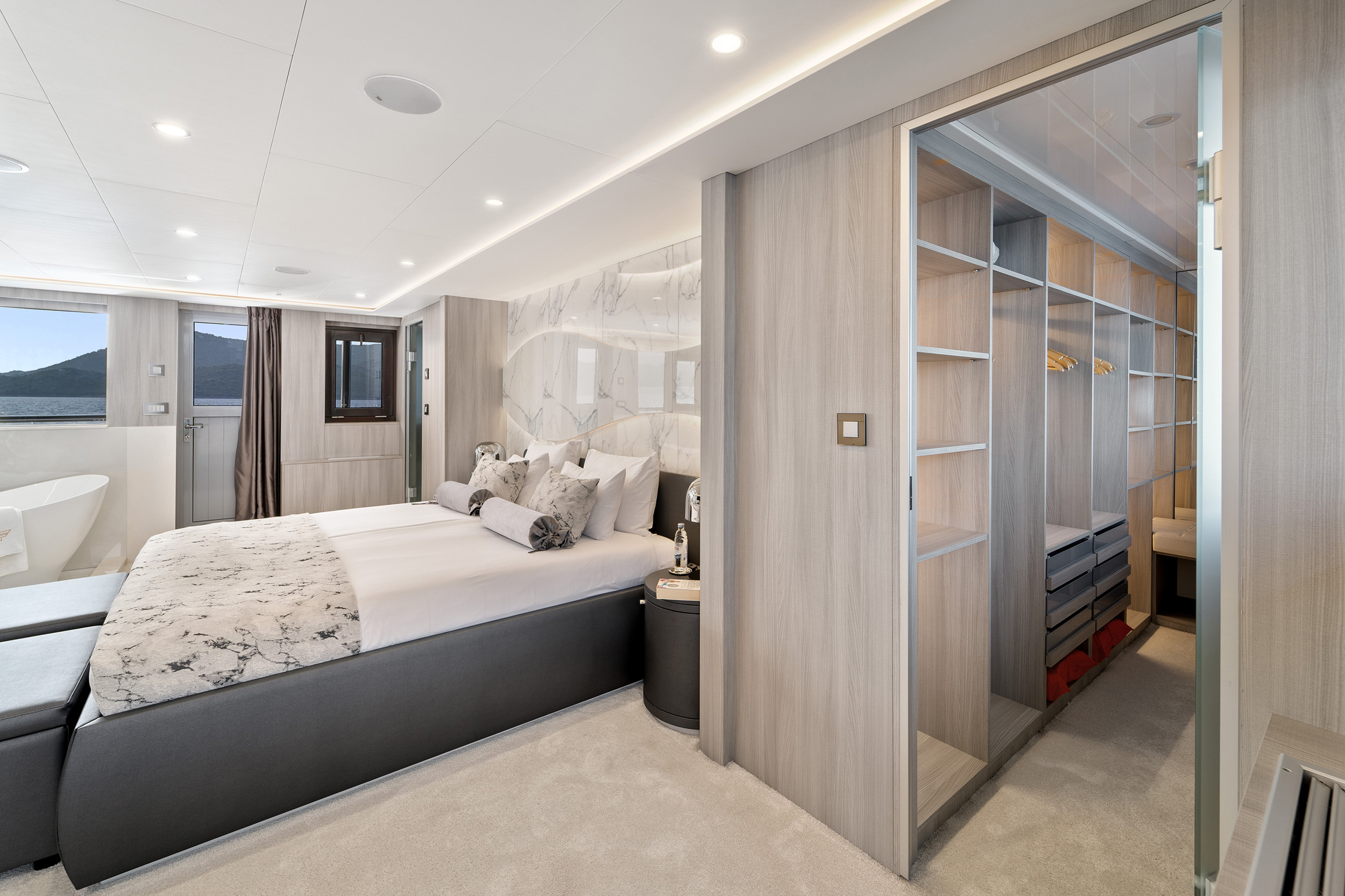 Offering delicious culinary delights and amenities such as a swimming pool and a jacuzzi on sundeck, as well as a cinema, gym, sauna, beauty spa/massage room, and a full menu of water toys, she provides the perfect yachting experience for up to 24 guests. FREEDOM'S subtle design comprises 11 regally appointed staterooms 2 huge master suites which are fully fitted with en-suite bathrooms. The vessel is fully air-conditioned and has WiFi throughout.