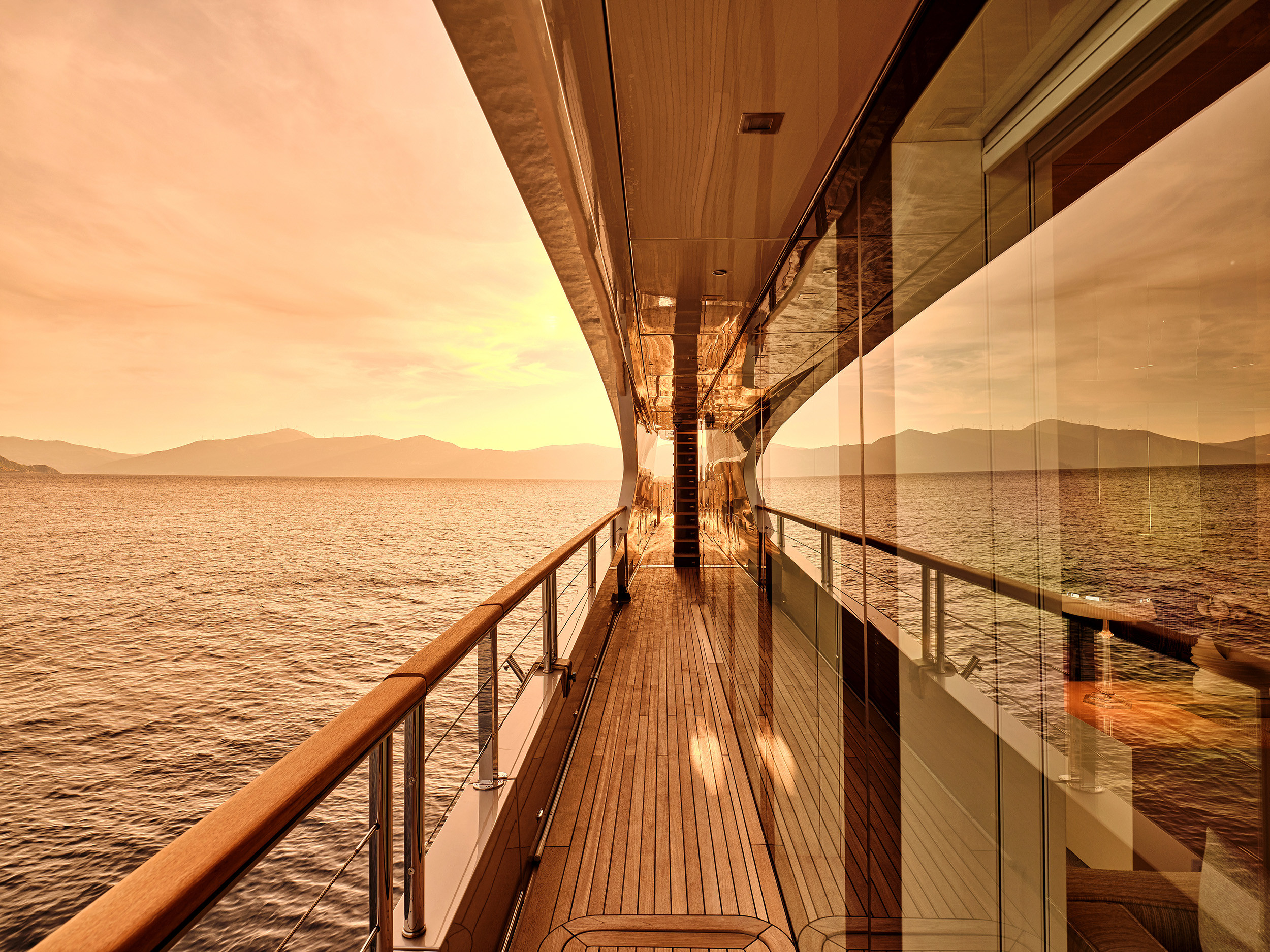 • Modern, light interiors complemented by expansive floor-to-ceiling windows in the main salon