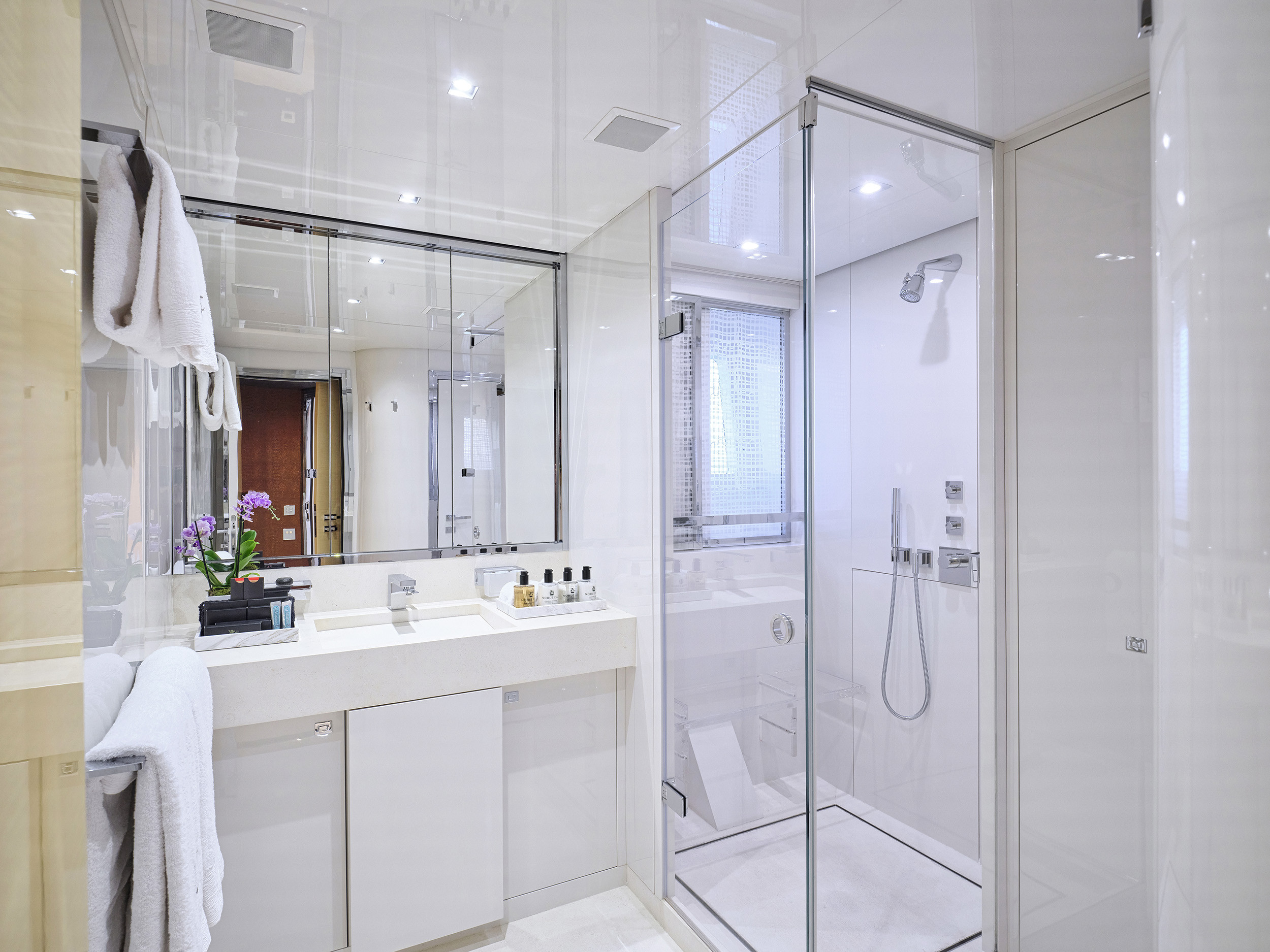 • Luxurious master suite on the bridge deck with its own private terrace and fitness amenities