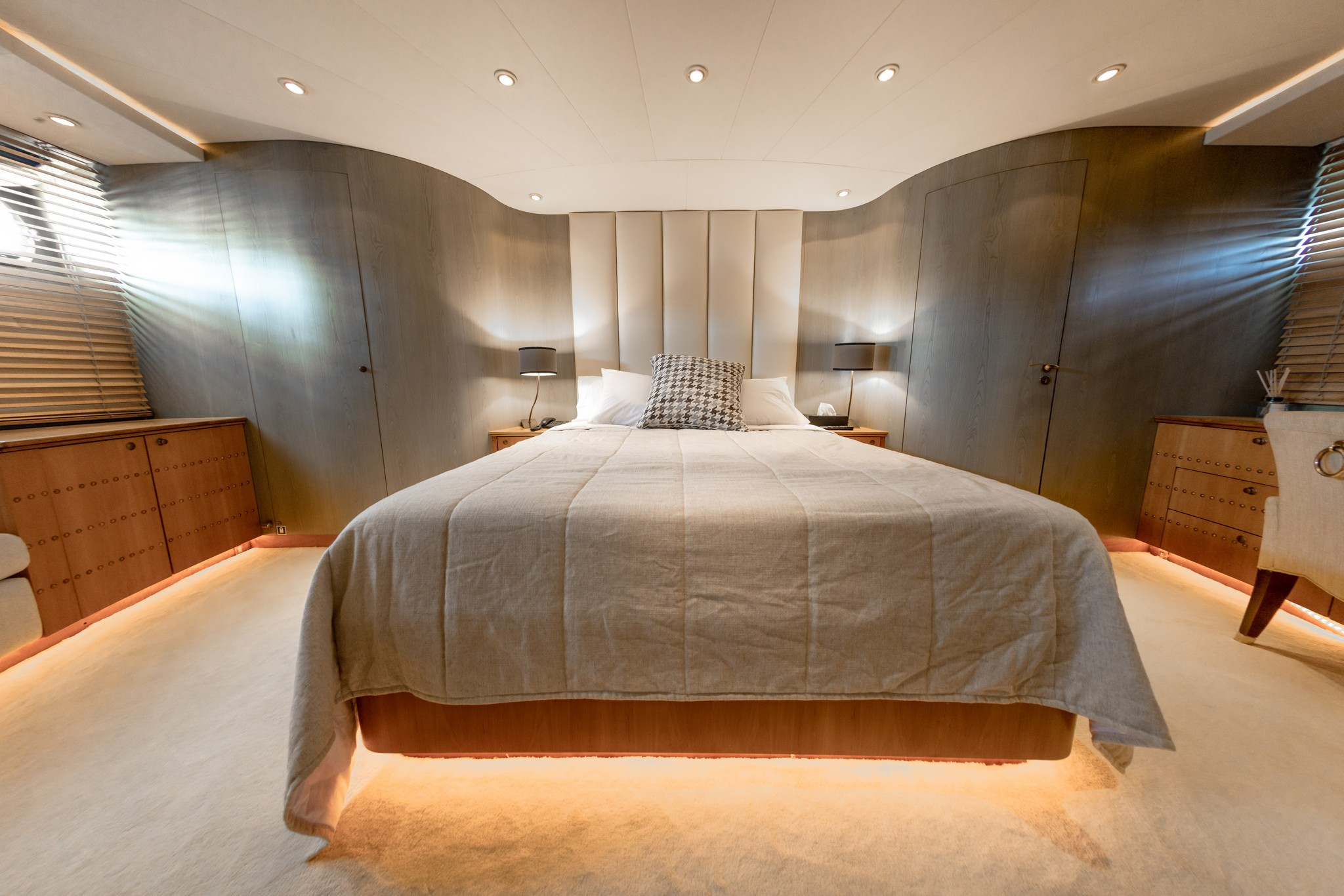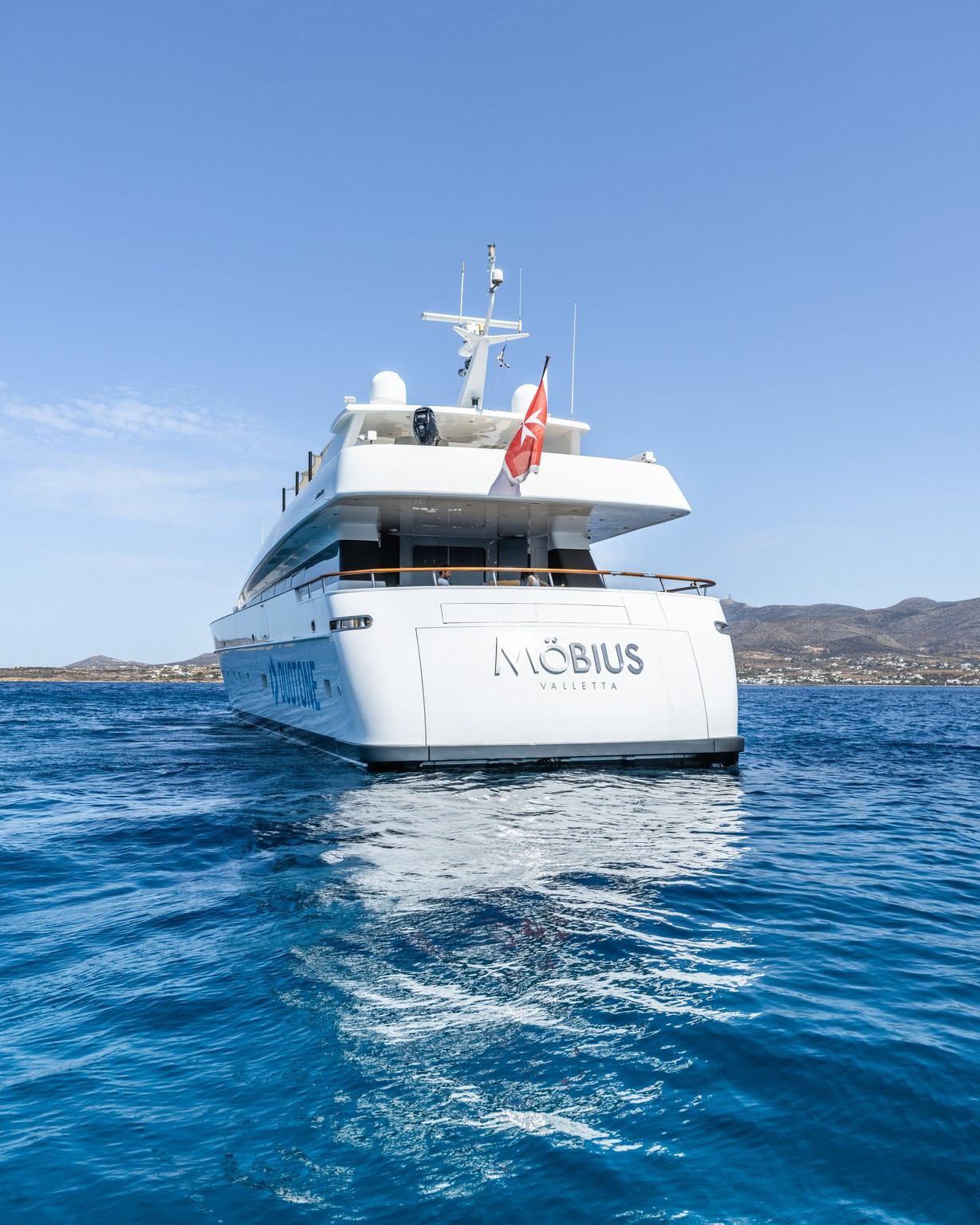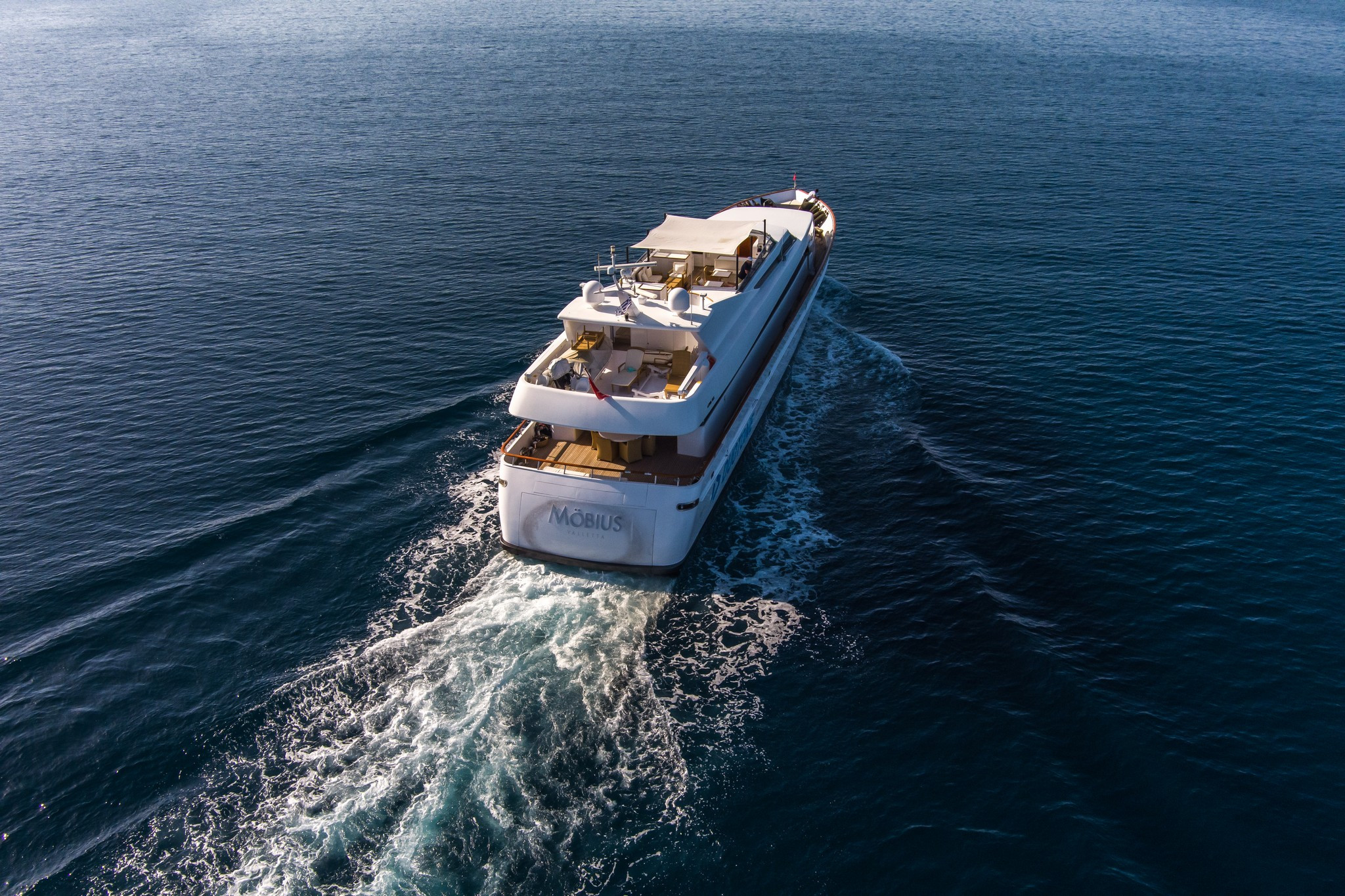 Boasting an array of sumptuous living areas laid out invitingly to create a warm and welcoming atmosphere onboard, motor yacht Mobius is the perfect luxury charter yacht for friends and family. Built in 1996 and refitted in 2021/2022 (new jacuzzi on the sundeck), Mobius can comfortably accommodate up to 11 guests in 5 en-suite cabins comprising a Master suite, one VIP cabin, one double cabin and two twin cabins (one with a pullman berth). Built with a GRP hull and GRP superstructure, she has impressive speed and great efficiency thanks to her planning hull. Powered by twin Deutz engines, she comfortably cruises at 20 knots, reaches a maximum speed of 22 knots with a range of up to 1,382 nautical miles. Guests will enjoy her wide variety of water toys, including a Seabob, and the new gym equipment available onboard!