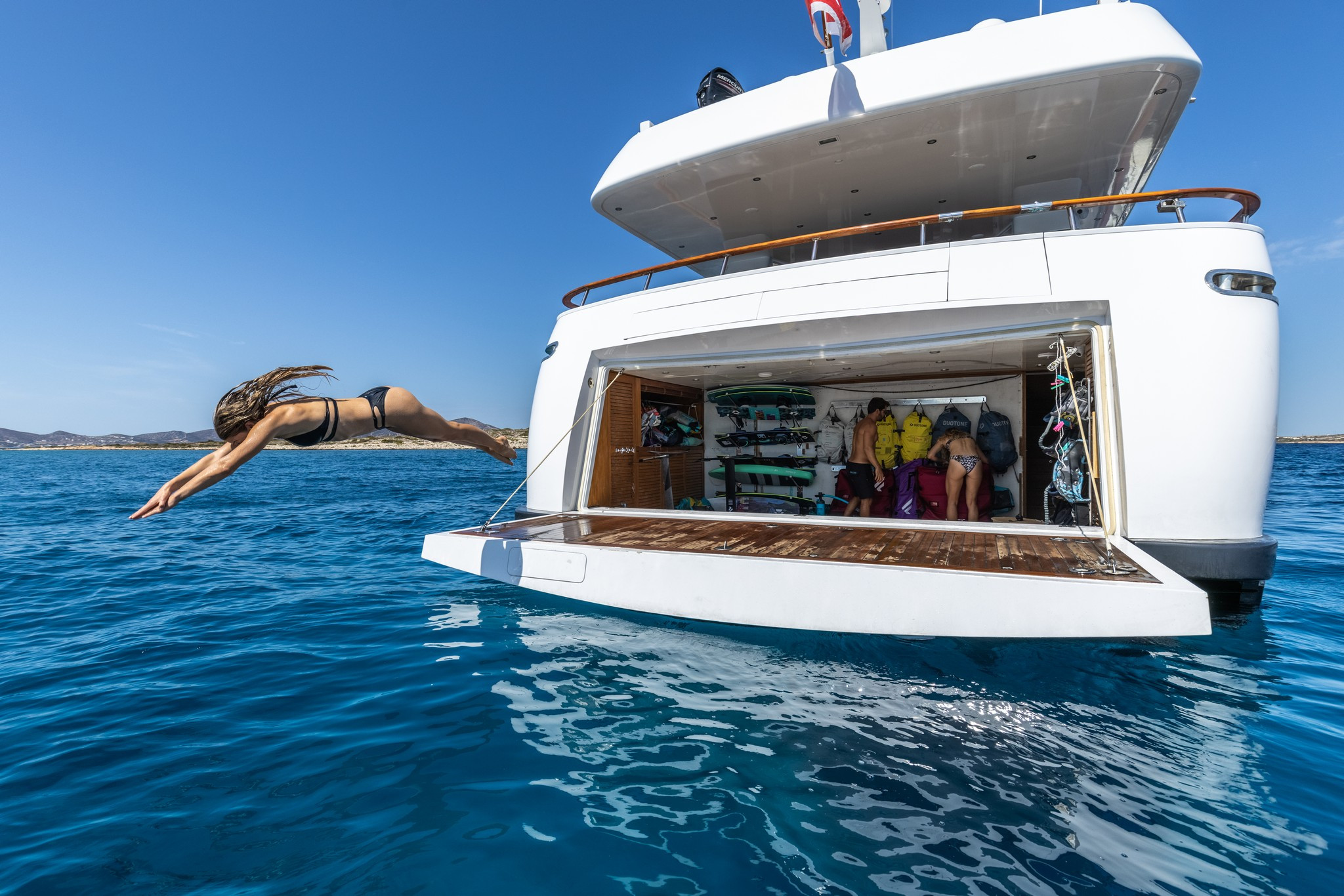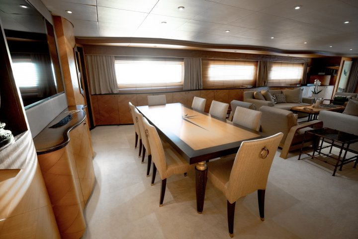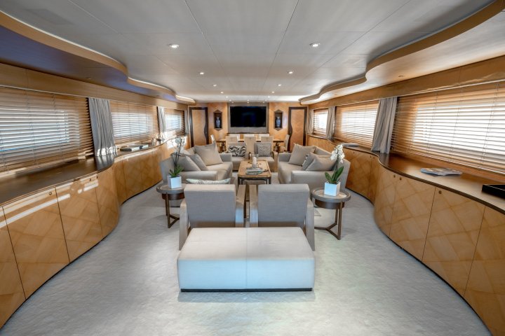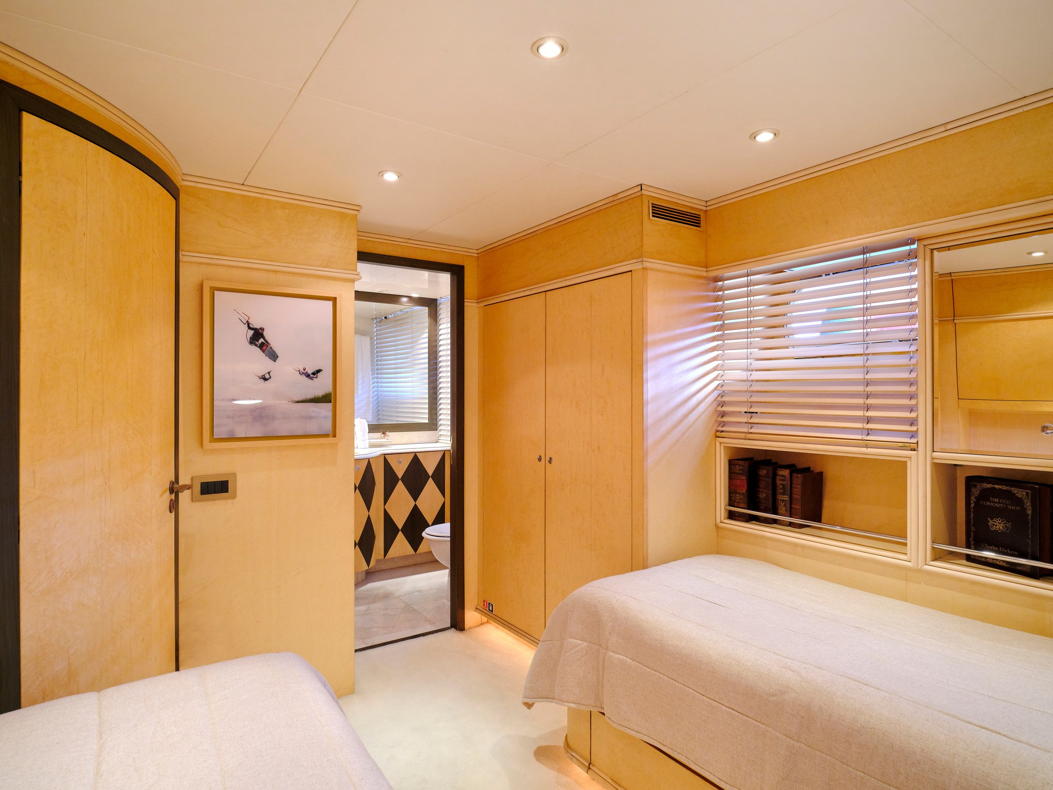 Boasting an array of sumptuous living areas laid out invitingly to create a warm and welcoming atmosphere onboard, motor yacht Mobius is the perfect luxury charter yacht for friends and family. Built in 1996 and refitted in 2021/2022 (new jacuzzi on the sundeck), Mobius can comfortably accommodate up to 11 guests in 5 en-suite cabins comprising a Master suite, one VIP cabin, one double cabin and two twin cabins (one with a pullman berth). Built with a GRP hull and GRP superstructure, she has impressive speed and great efficiency thanks to her planning hull. Powered by twin Deutz engines, she comfortably cruises at 20 knots, reaches a maximum speed of 22 knots with a range of up to 1,382 nautical miles. Guests will enjoy her wide variety of water toys, including a Seabob, and the new gym equipment available onboard!