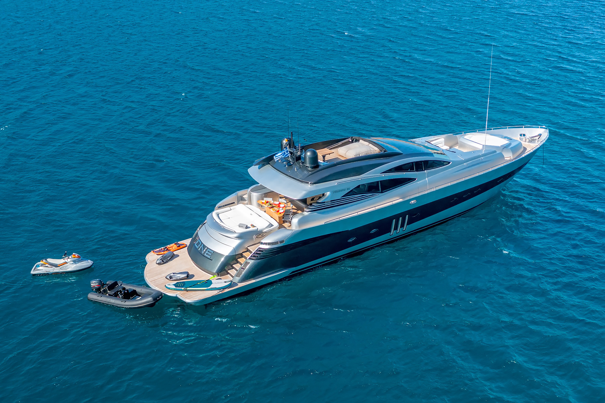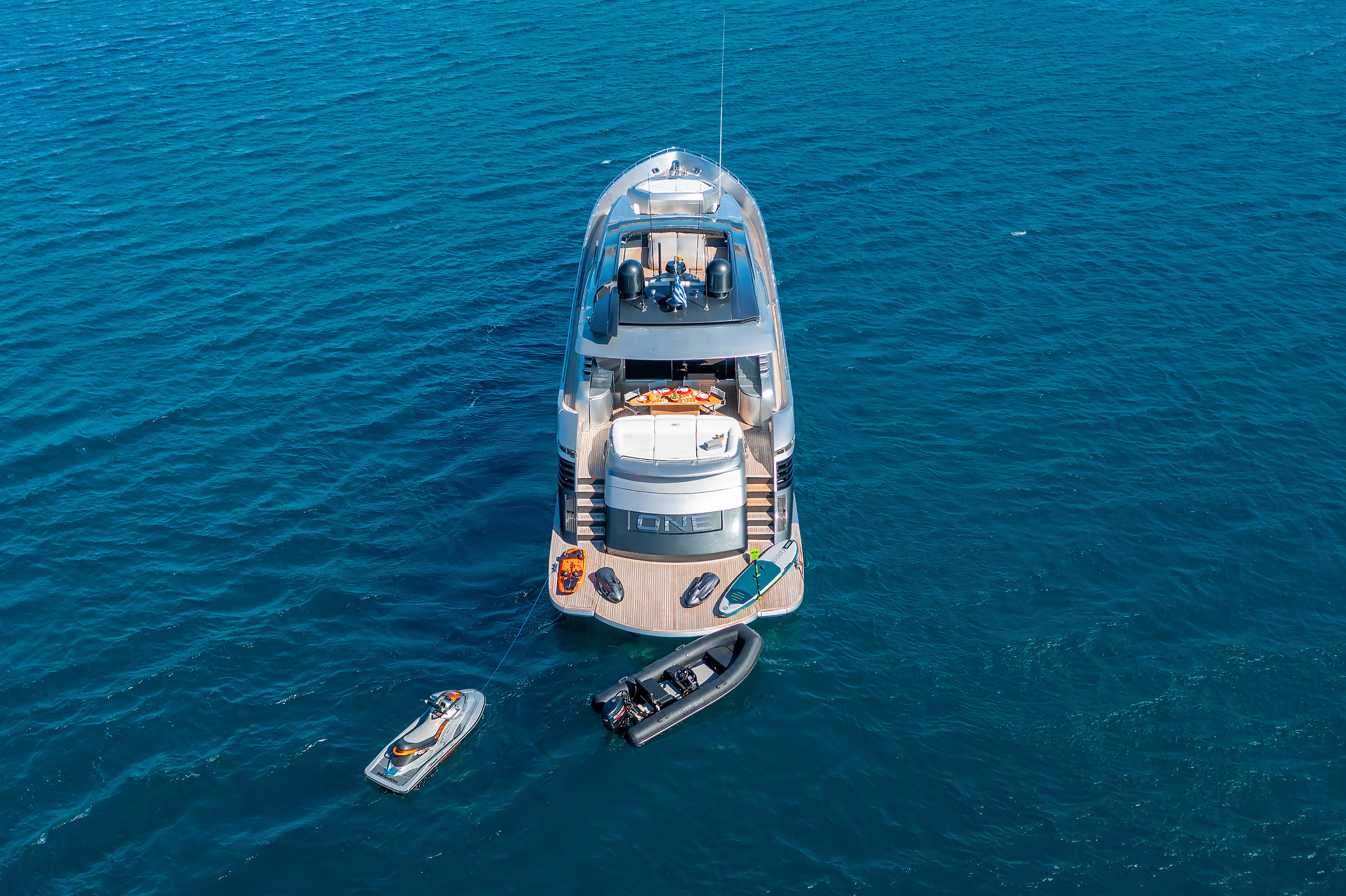 Timeless styling, beautiful furnishings and sumptuous seating throughout create an elegant and comfortable atmosphere. ONE offers the exhilarating thrill of a sports car while providing charter guests with the highest level of comfort on board.