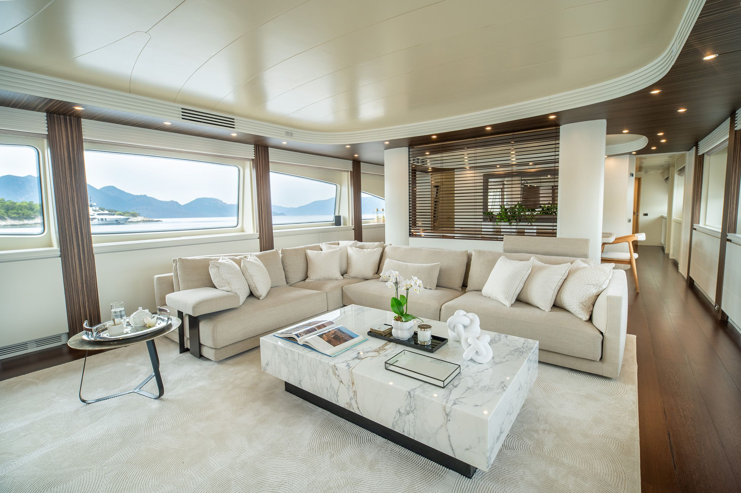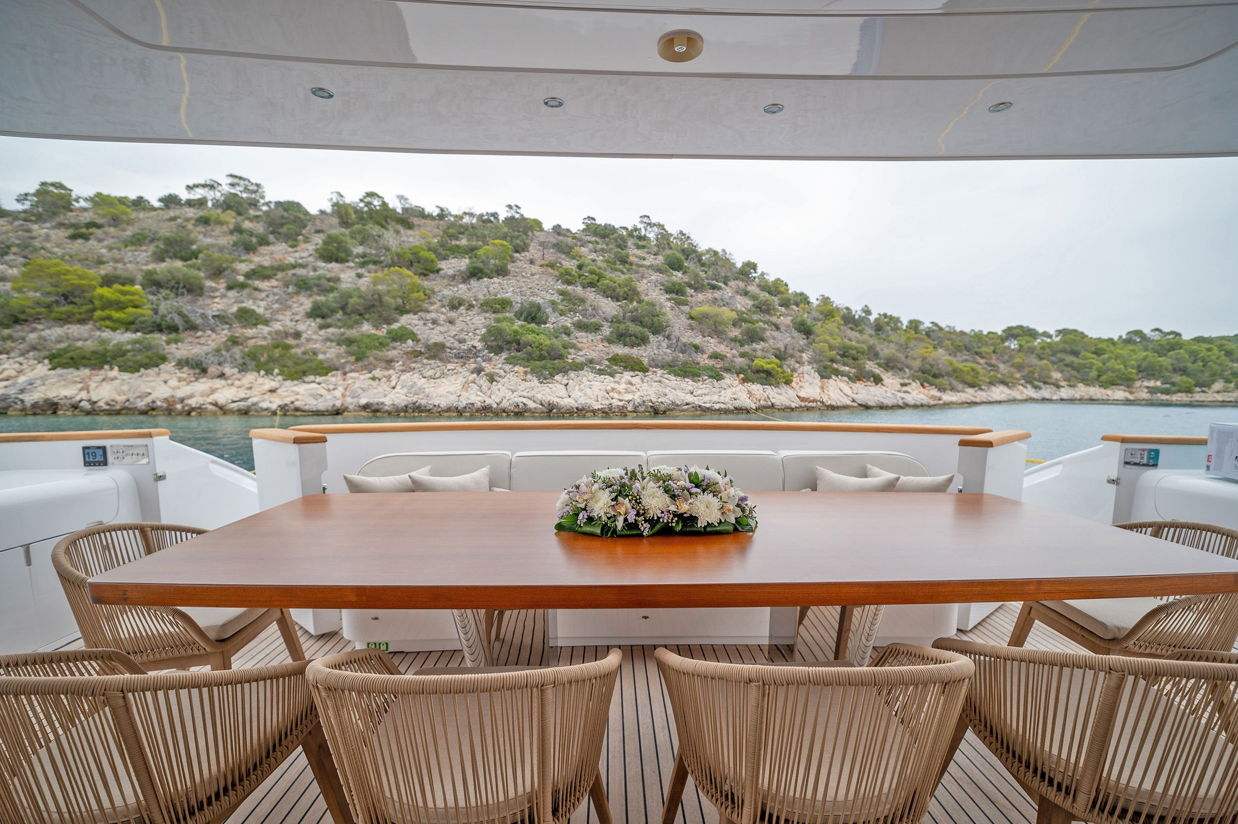 Offering unique amenities and refined accommodation, indulge in delectable alfresco dining experiences on deck, bask in the warm embrace of the sun while relaxing in the jacuzzi. Venturing forward in the grand halls of Pareaki II prepare to be captivated by Pareaki II's stunning contemporary interior adorned with panoramic windows, inviting abundant natural light to dance upon neutral, plush furnishings, ensuring a blissful sanctuary throughout your entire voyage.