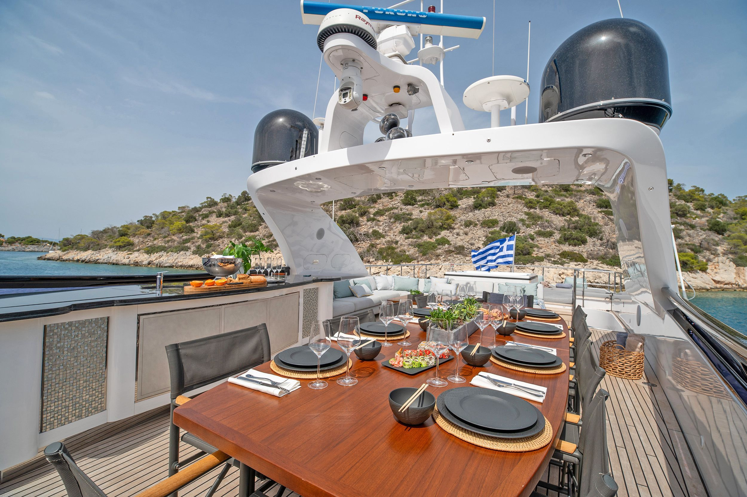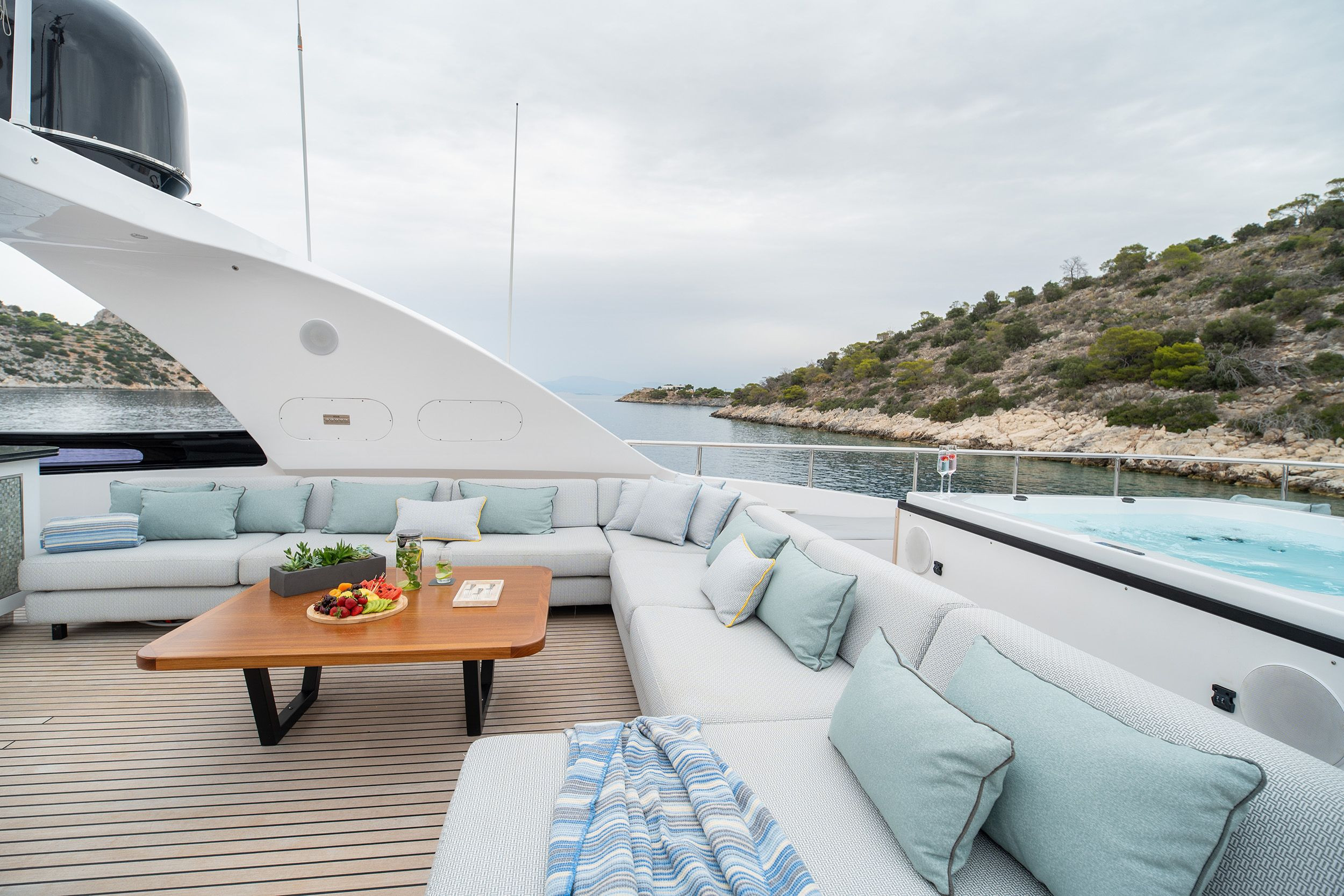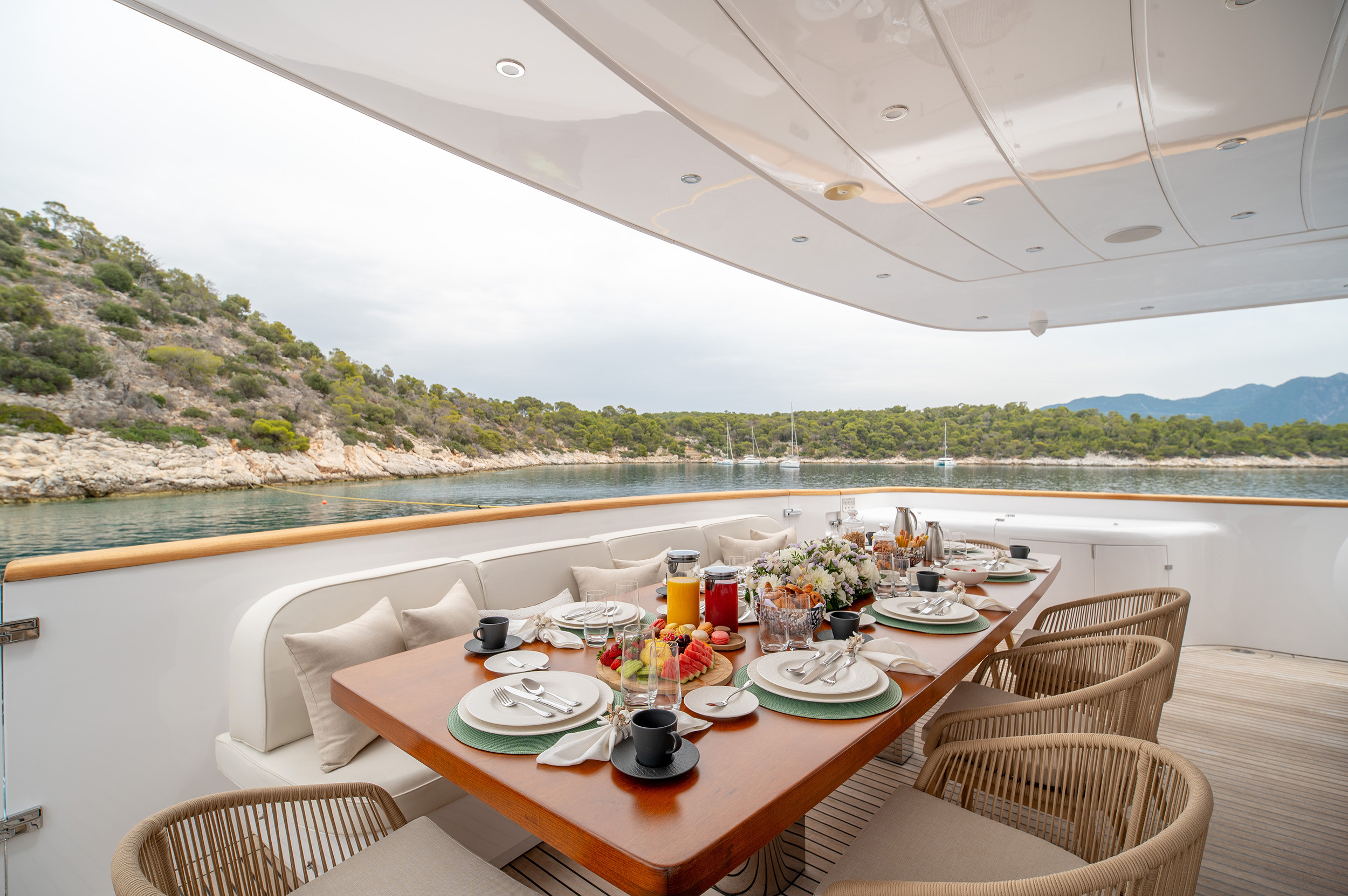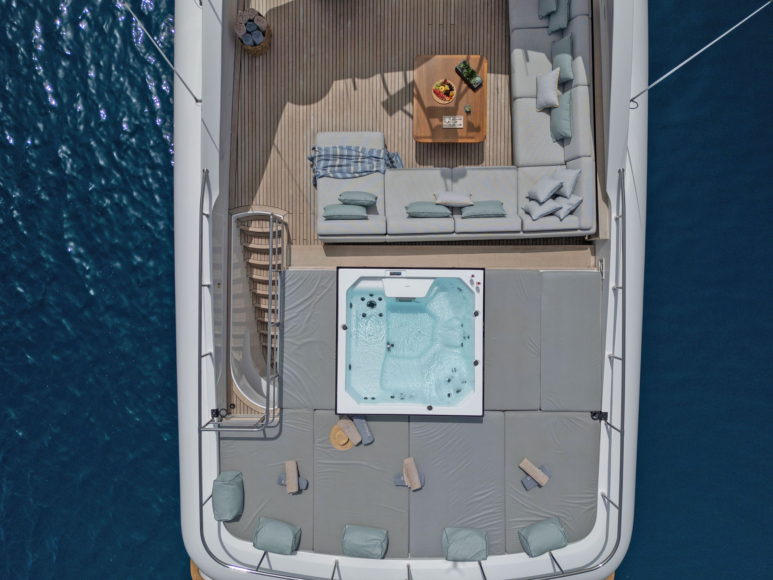 - Upper deck with full shading option for maximum comfort while cruising and at anchor