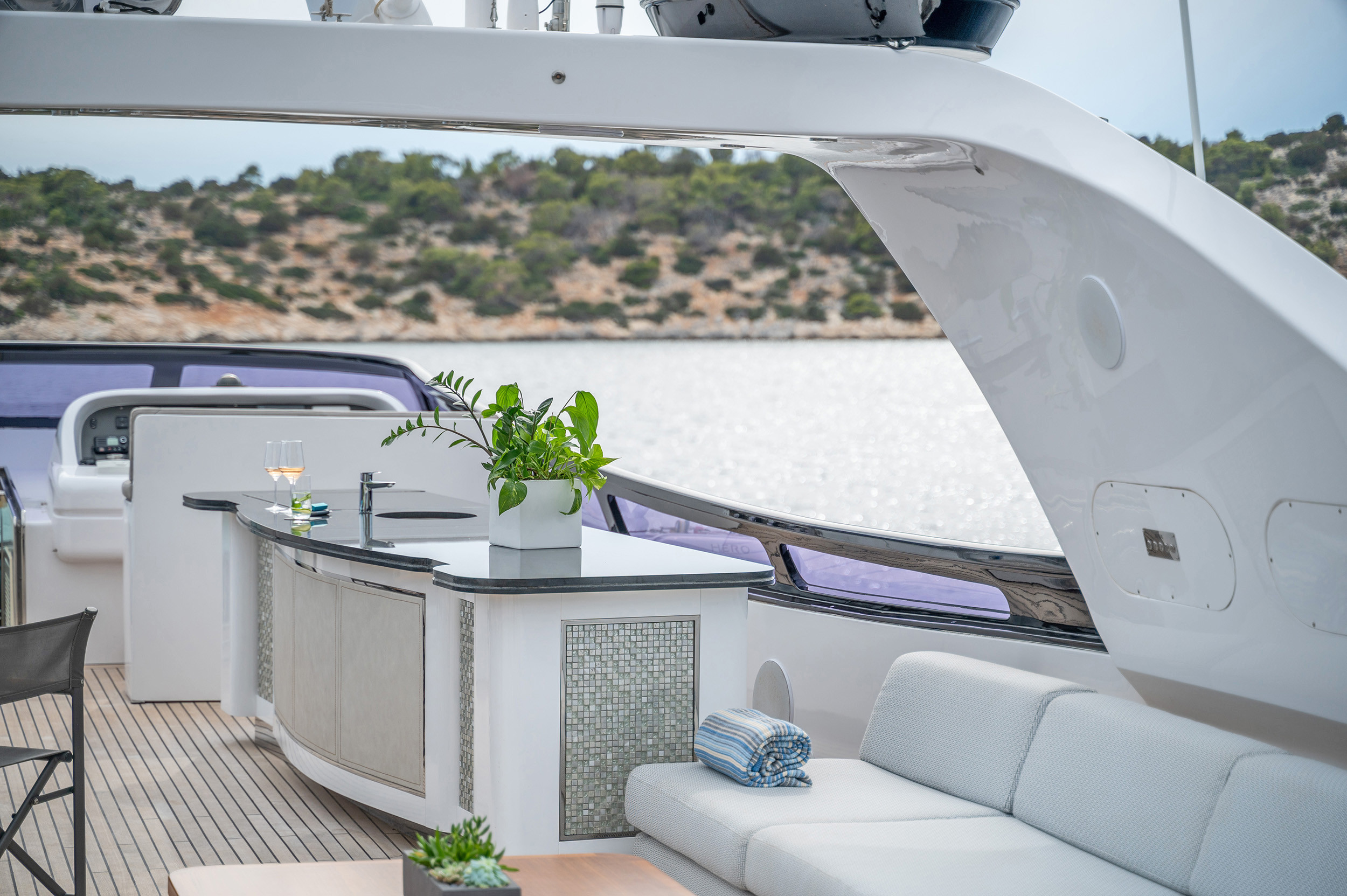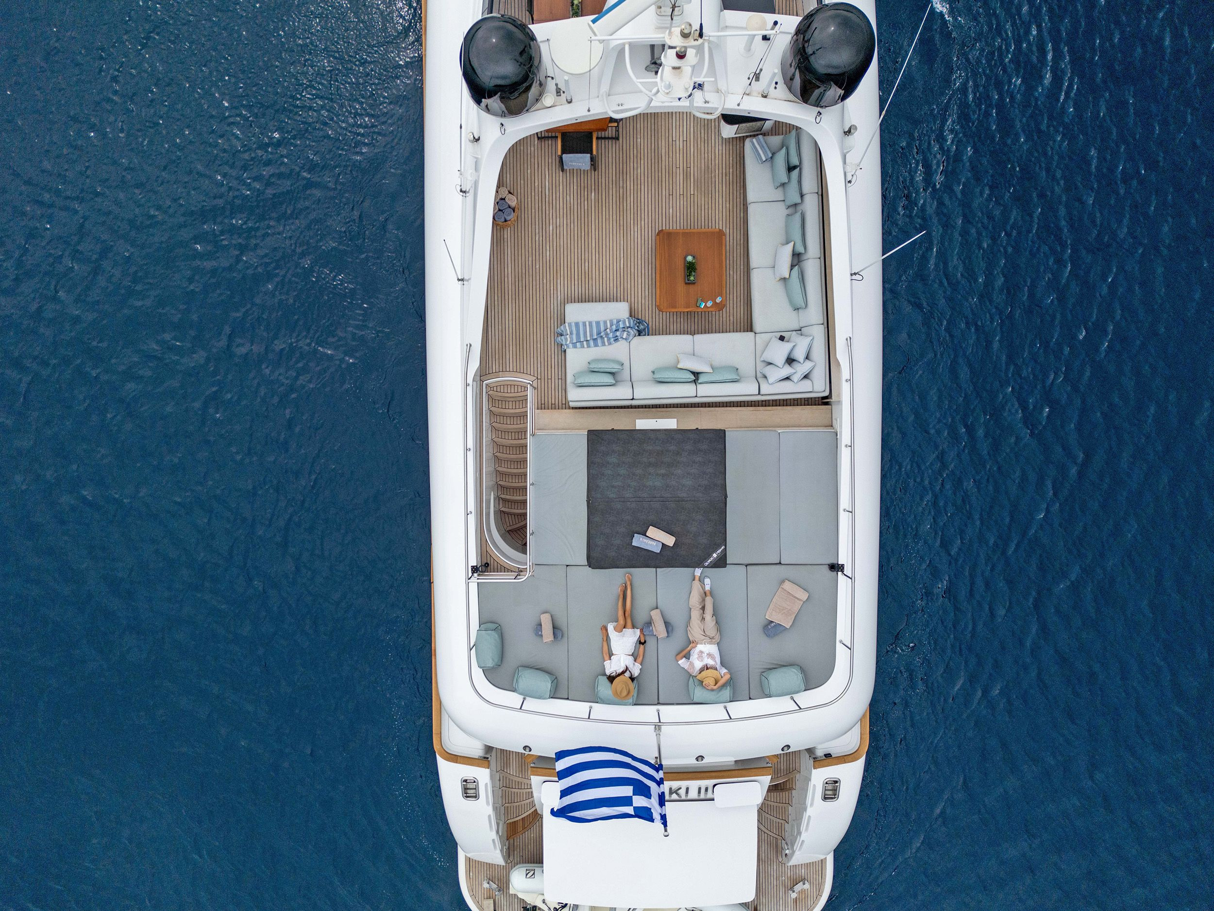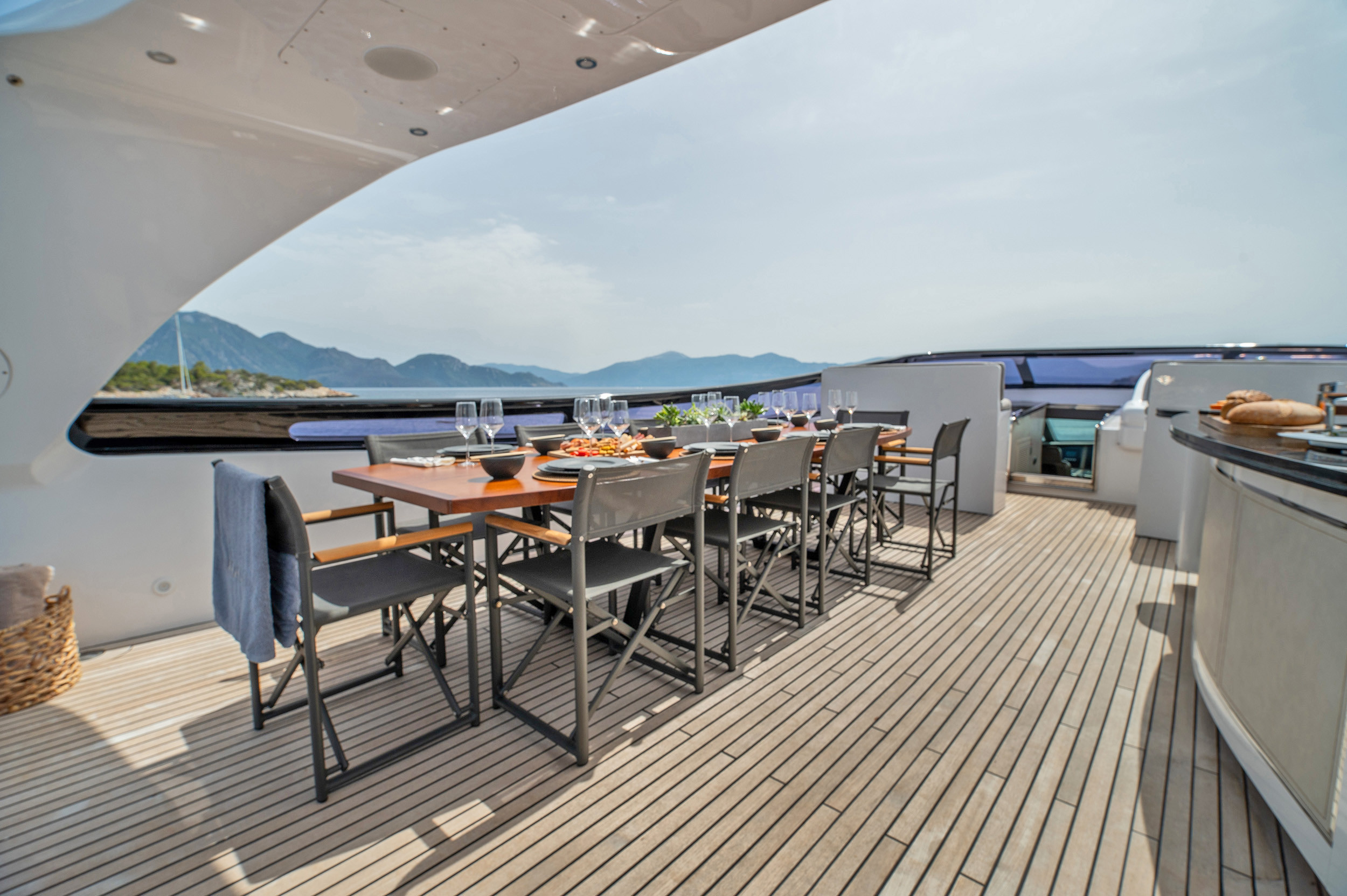 - Upper deck with full shading option for maximum comfort while cruising and at anchor