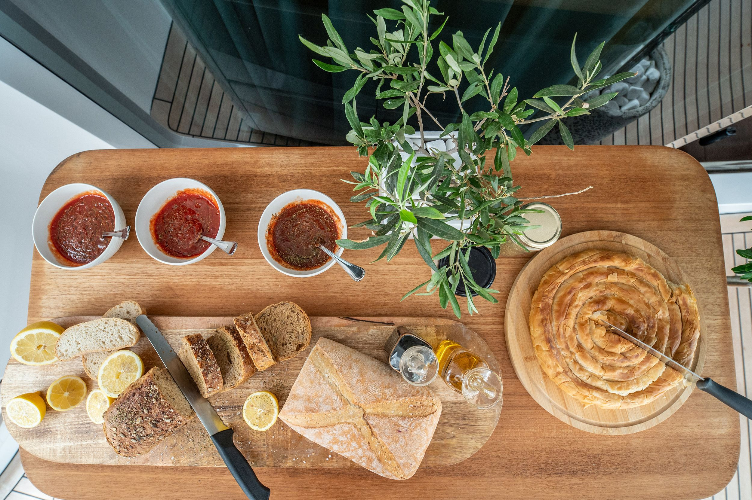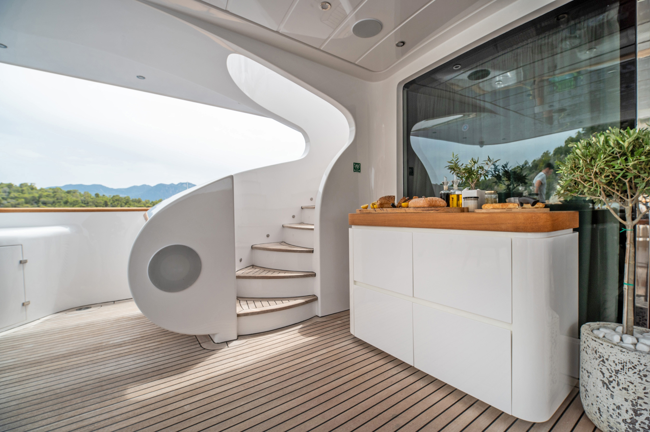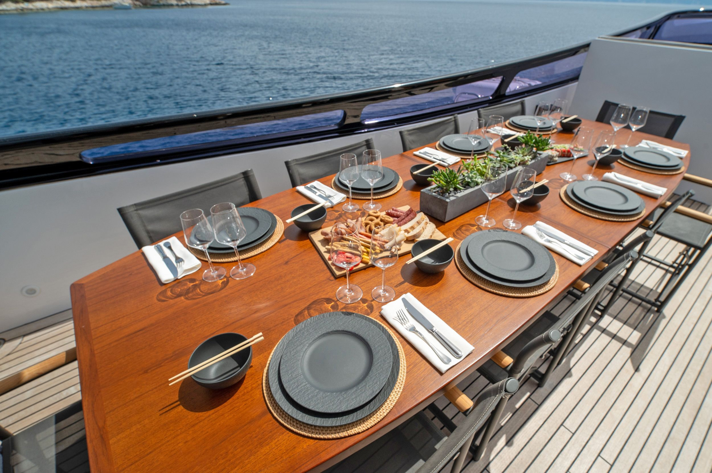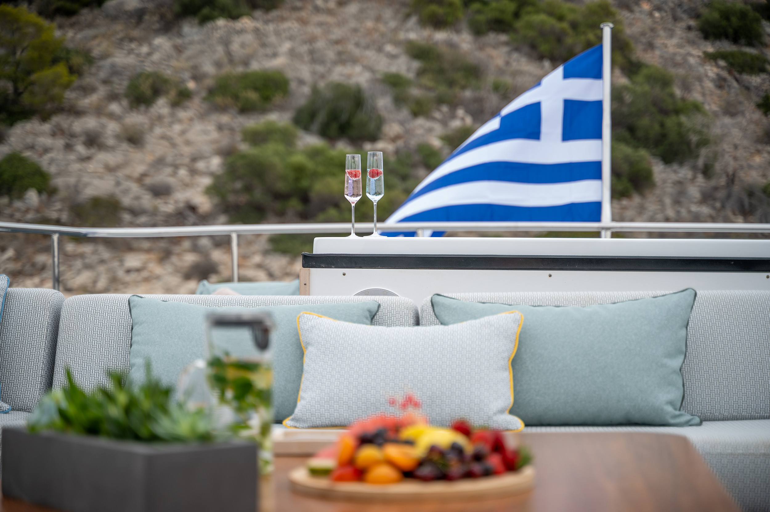 - Upper deck with full shading option for maximum comfort while cruising and at anchor