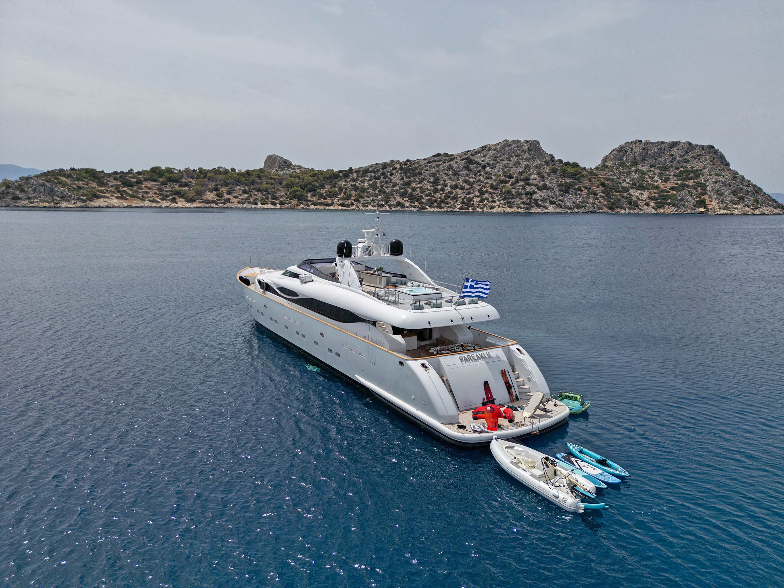 Enter the luxurious world aboard Pareaki II, a magnificent 39.08m motor yacht of Italian craftmanship, designed by the mastermind Roberto Del Re, guaranteeing unrivaled stability and supreme comfort.