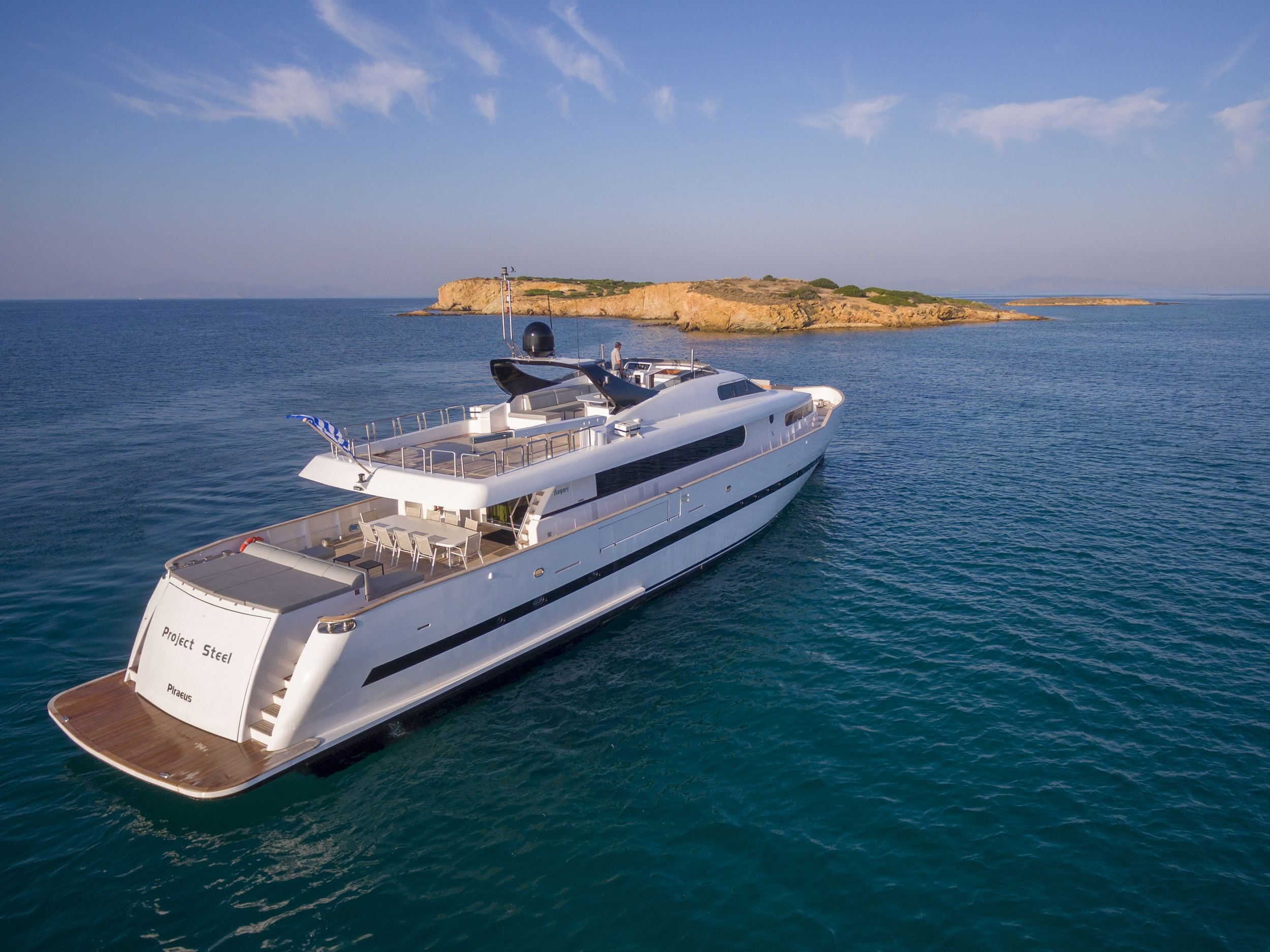 In 2013, an ambitious project was conceived to restore the super yacht "Miss Danna", designed by naval architect Vincenzo Ruggiero and built by Bugari shipyard to her full glory, then man her to the highest standard so as to turn her into a point of reference in luxury yacht charters! Following the refit, the renamed Project Steel is a truly majestic yacht offering smooth and quiet cruising as she effortlessly traverses the Greek seas. In 2019 the project was continued with a full hull conversion including a 4 meter extension and a new vertical bow.