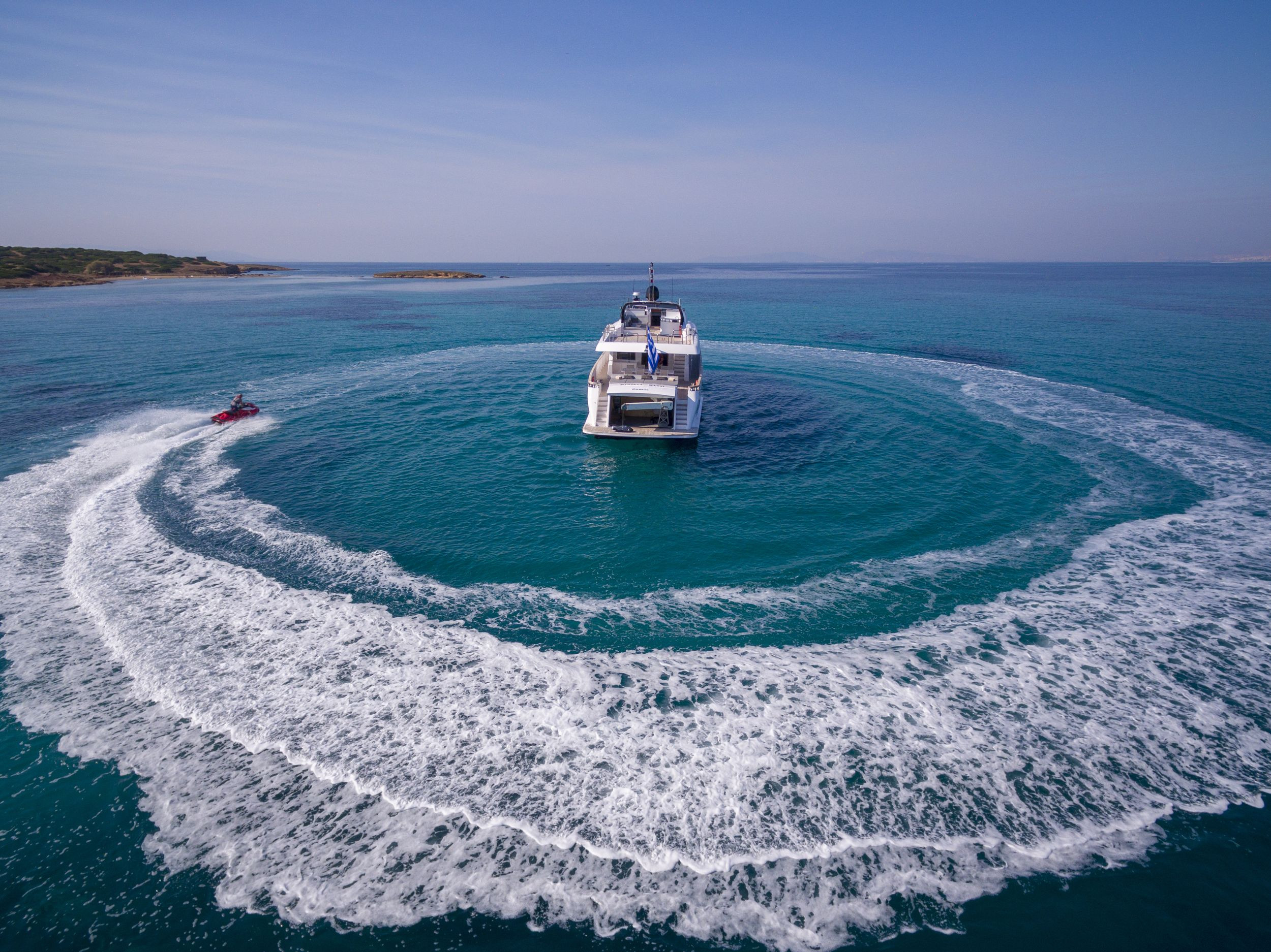Project Steel is our amazing Bugari 112, a motor-yacht available for crewed charters throughout Greece. Featuring 5 cabins with ensuite facilities, she is perfect for larger groups of up to 12 guests.