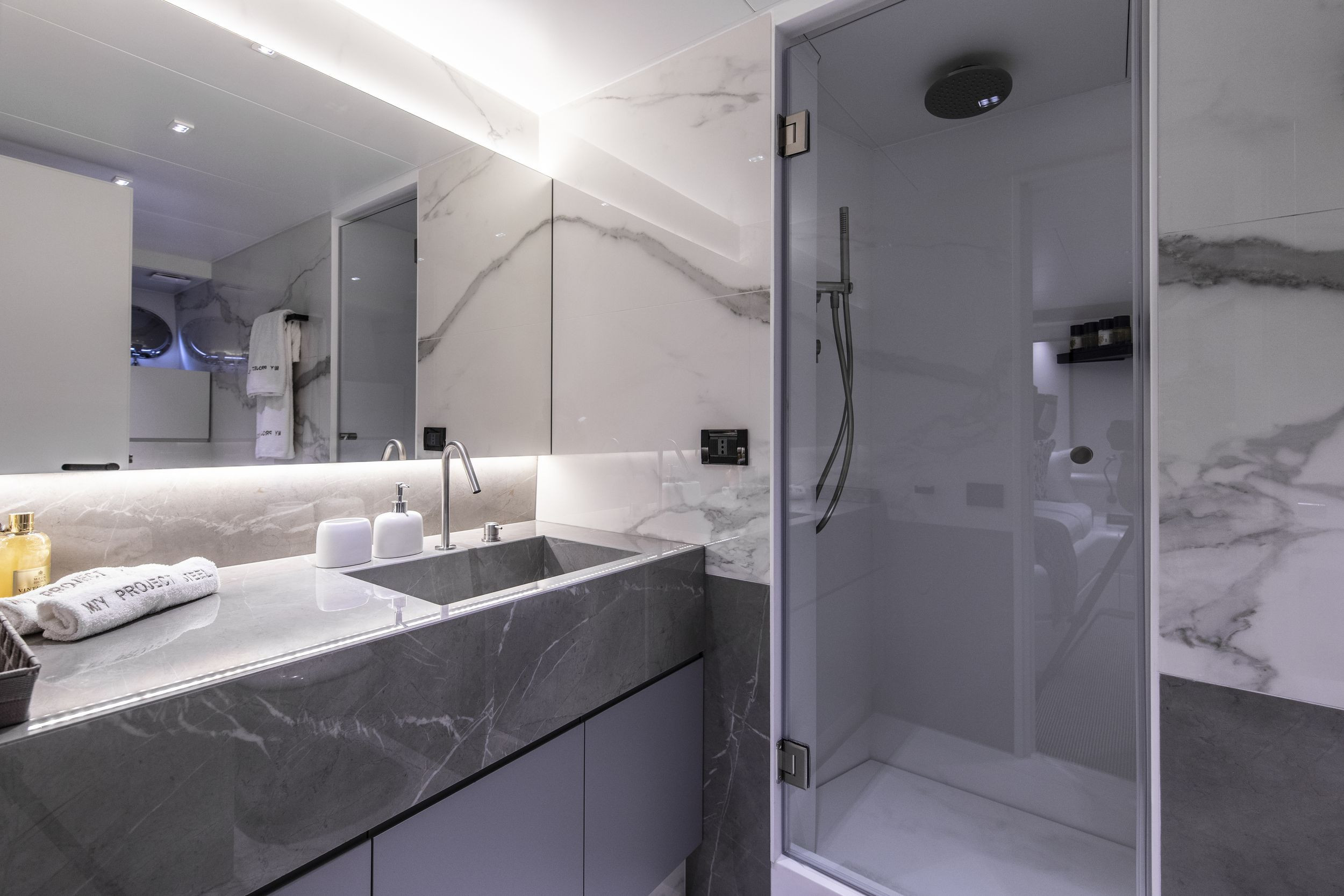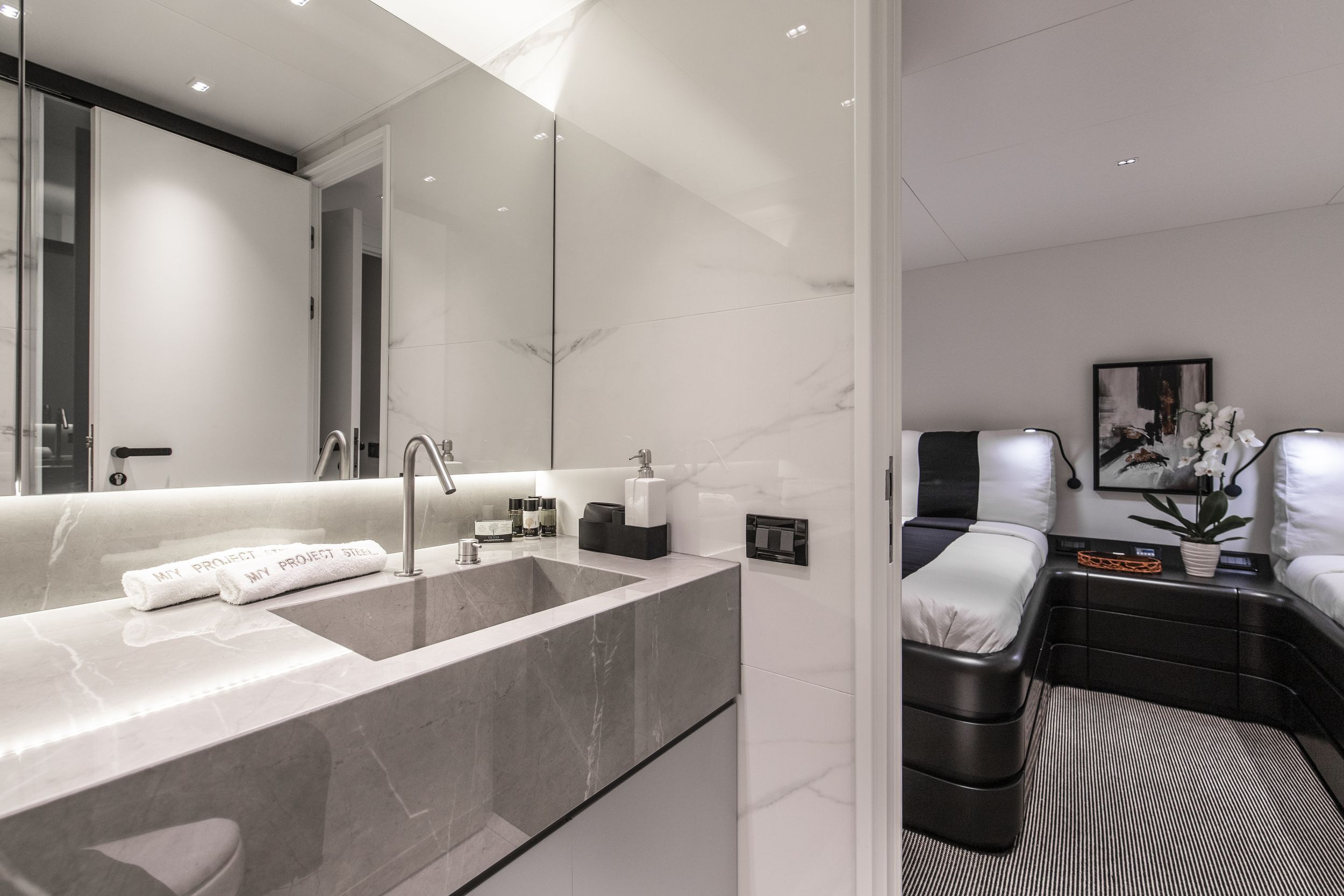 12 guests in 1 Master Suite , 1 VIP & 2 twin cabins each with an additional single upper pullman, all with en-suite facilities and individual A/C control - 1 Double convertible to playroom on Main Deck.