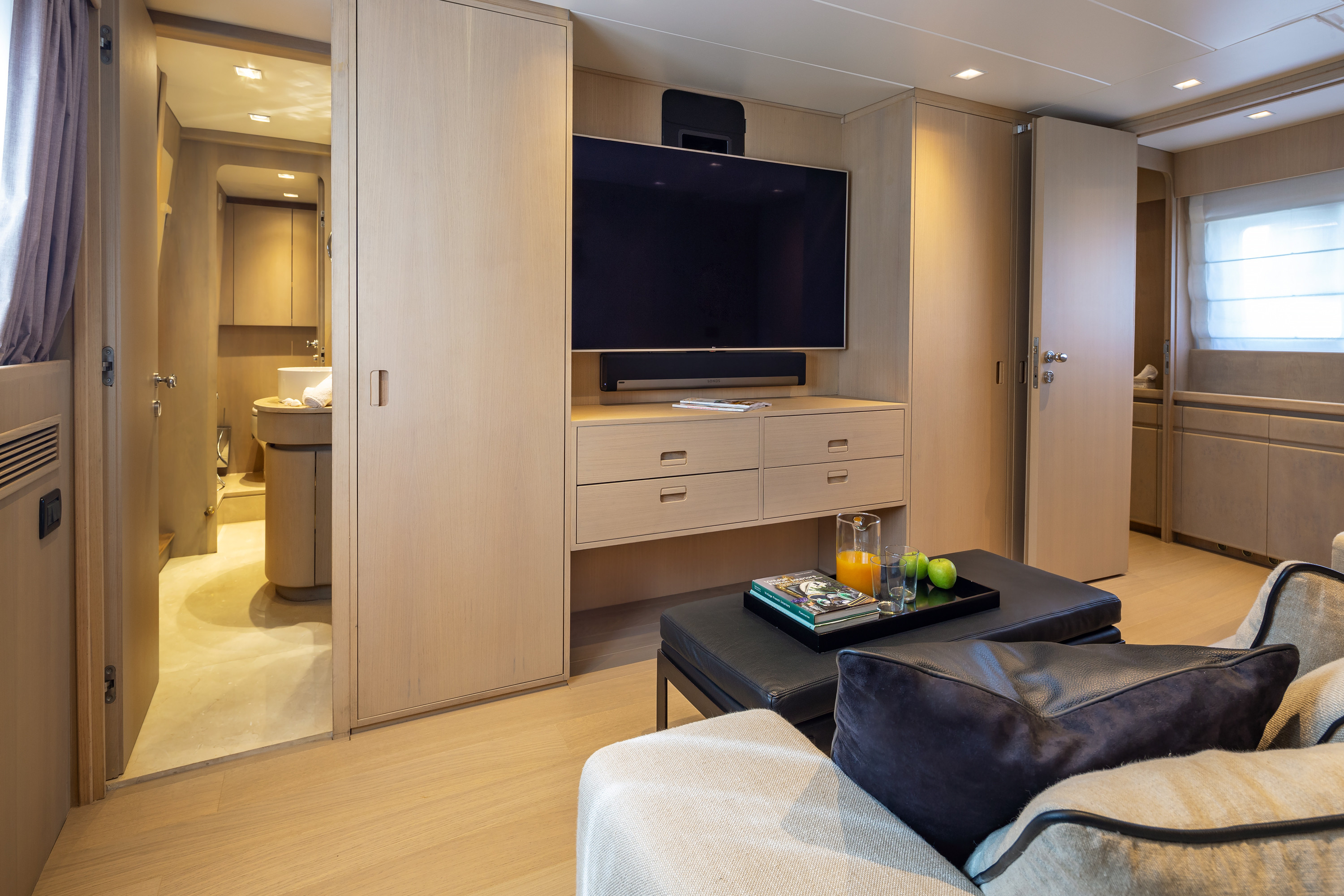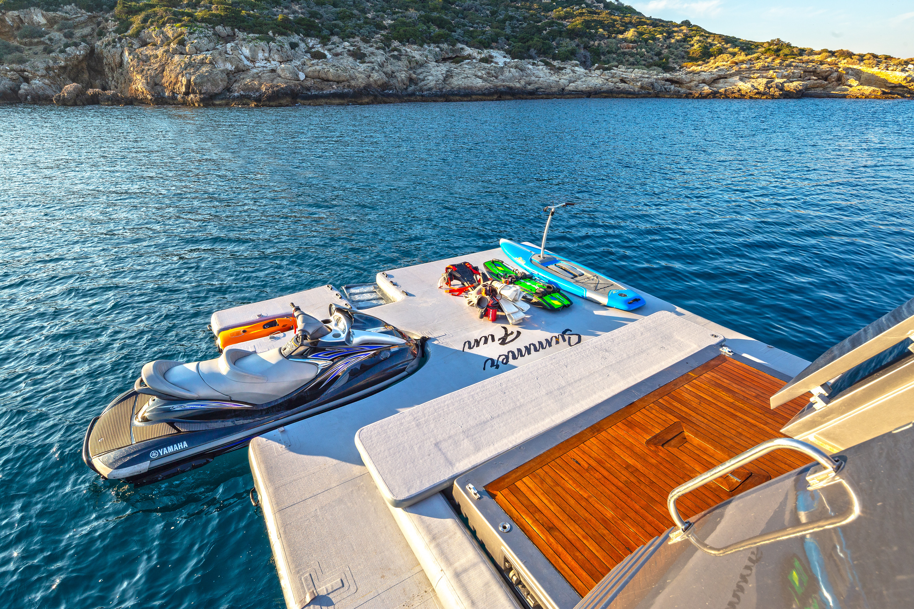 Her interior is sleek and modern with a neutral colour scheme running throughout the vessel, giving a calming and elegant vibe. She sleeps up to 12 guests in 6 finely decorated rooms, including one Master Suite, 1 VIP on the Main Deck that converts into a Playroom, 4 Twin cabins all convertible into Double (upon request) and all with en suite facilities . She is also capable of carrying up to 7 crew members on board to ensure a relaxed luxury yacht experience. Summer Fun's timeless styling along with her impressive leisure and entertainment facilities such as a wide collection of water toys make her the ideal charter yacht for socializing and entertaining family and friends.