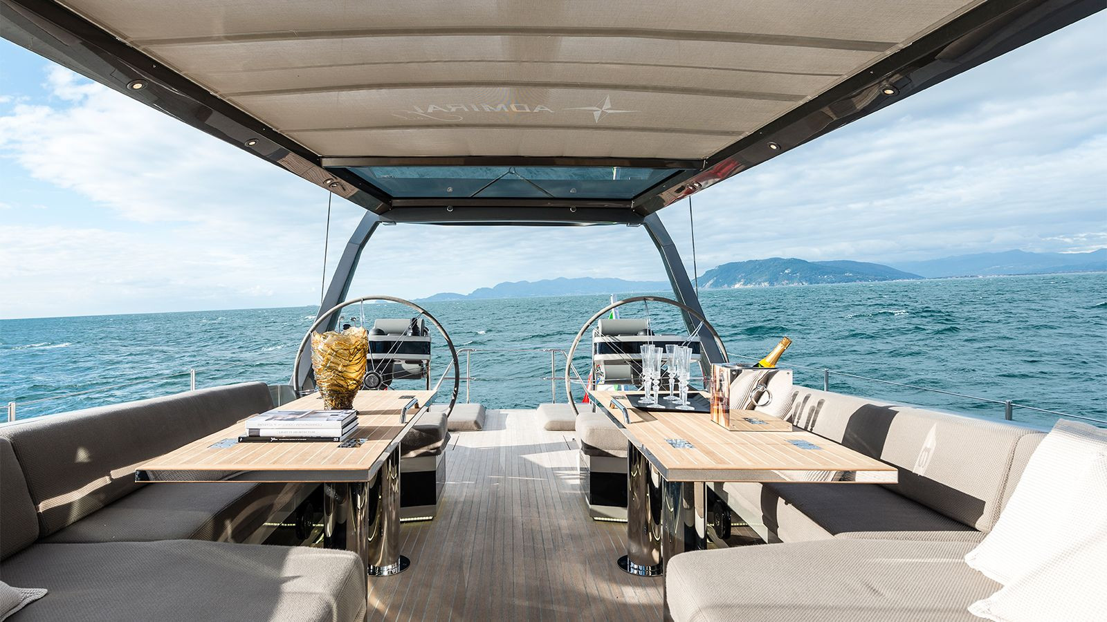 - Retractable hard rooftop offering top comfort while sailing and at anchor
