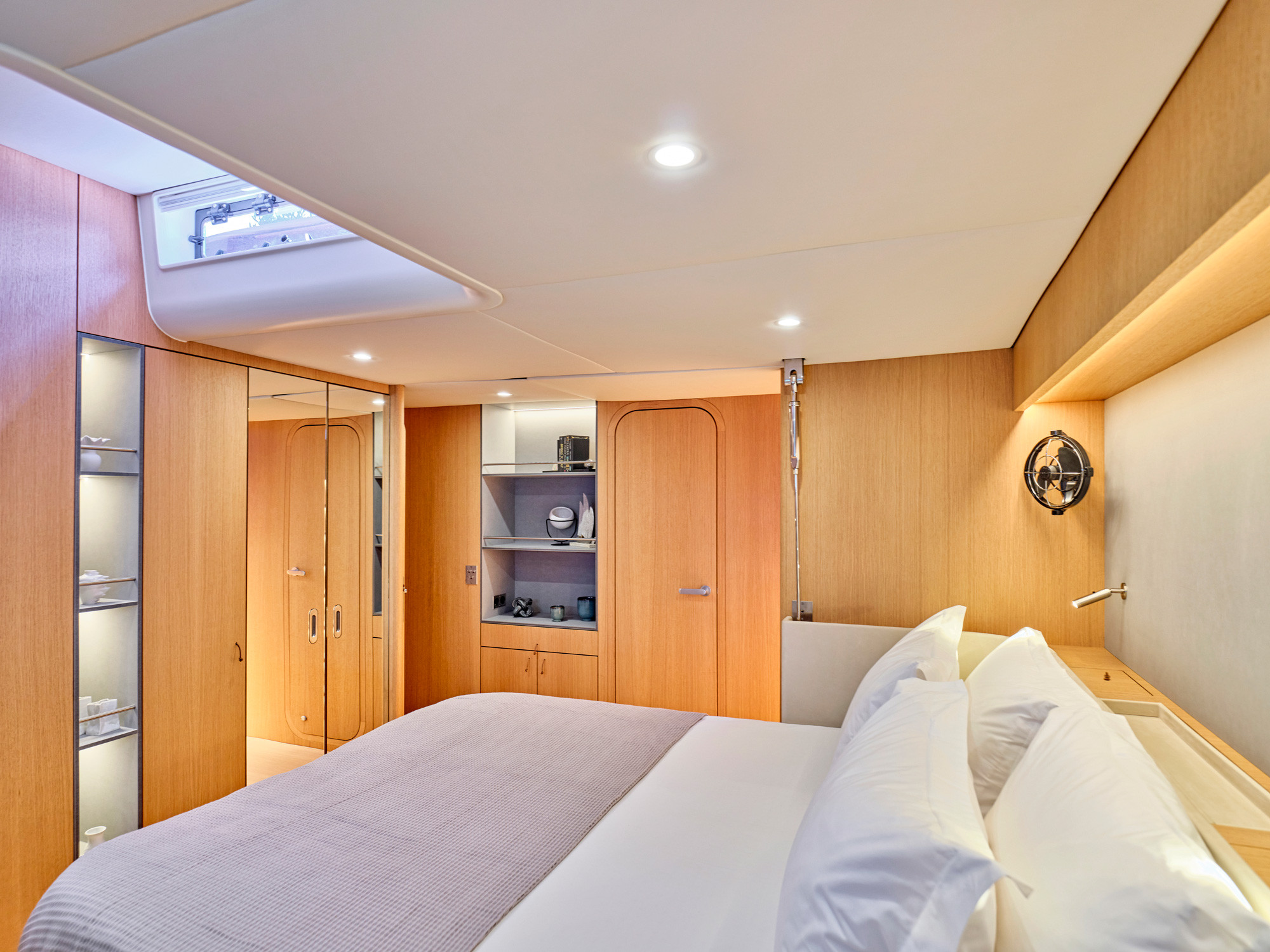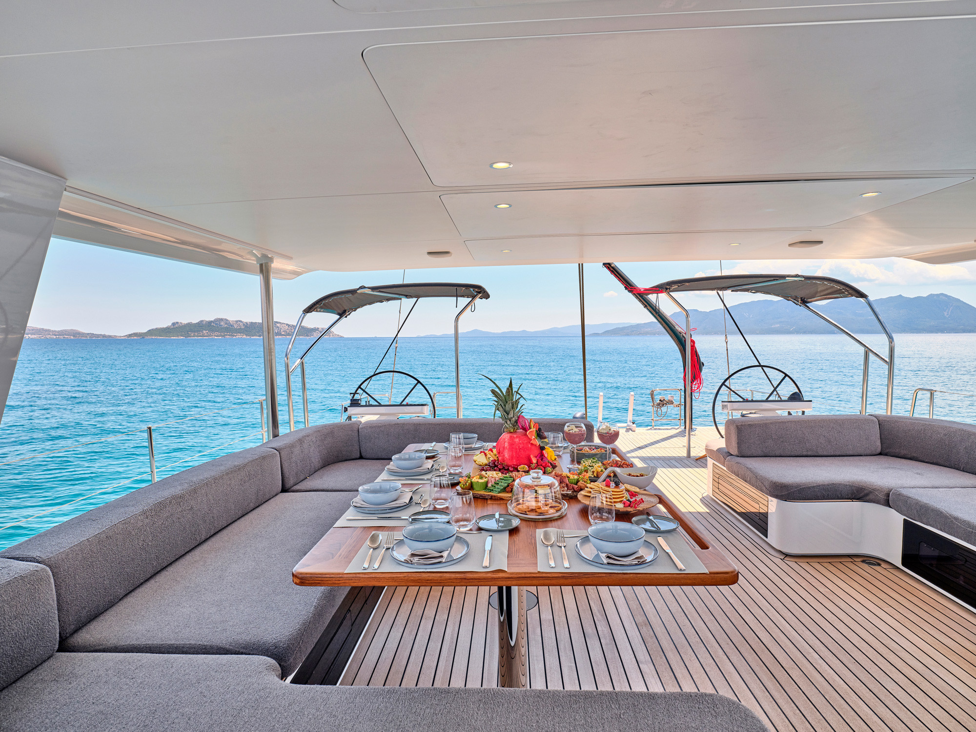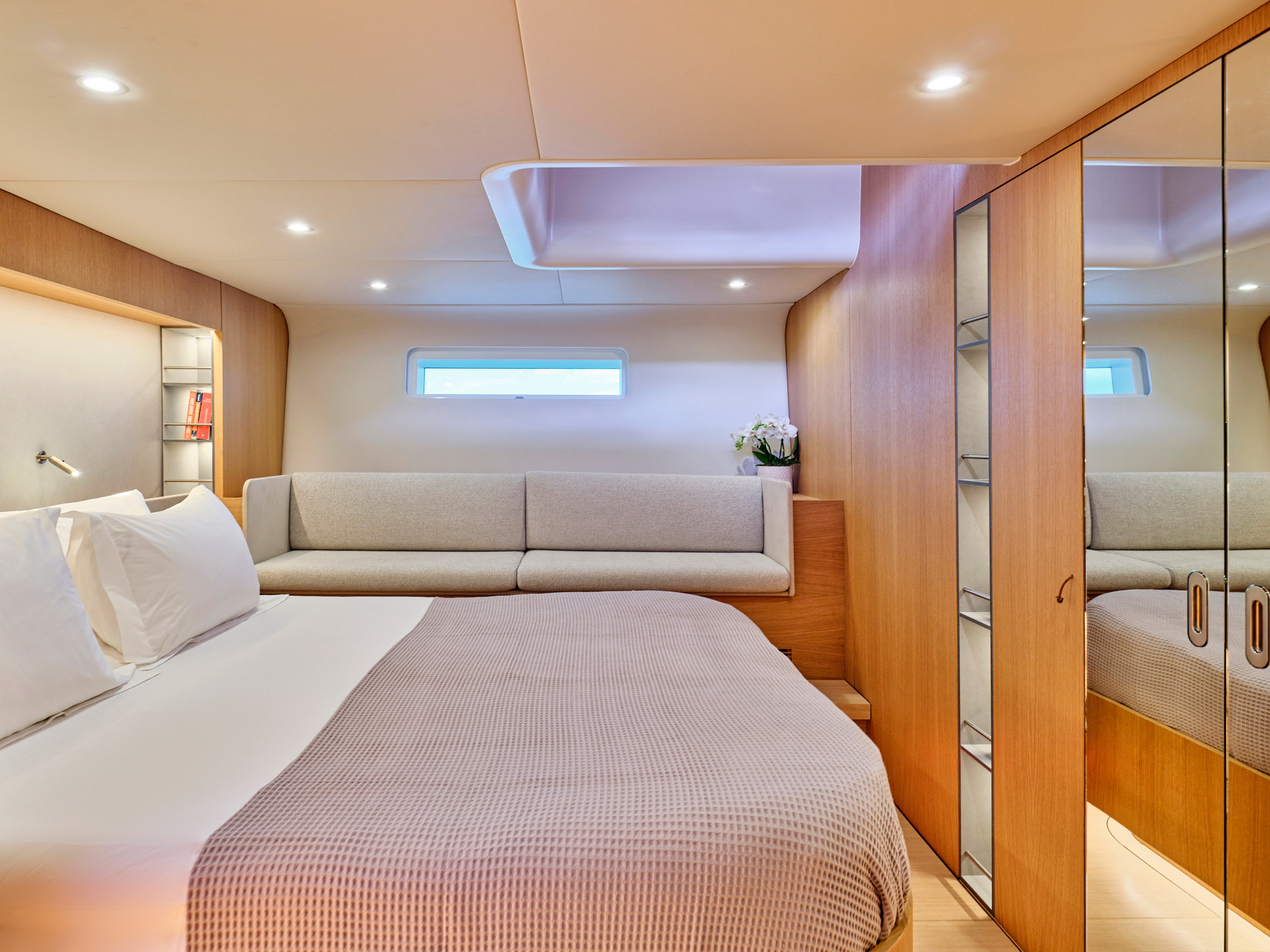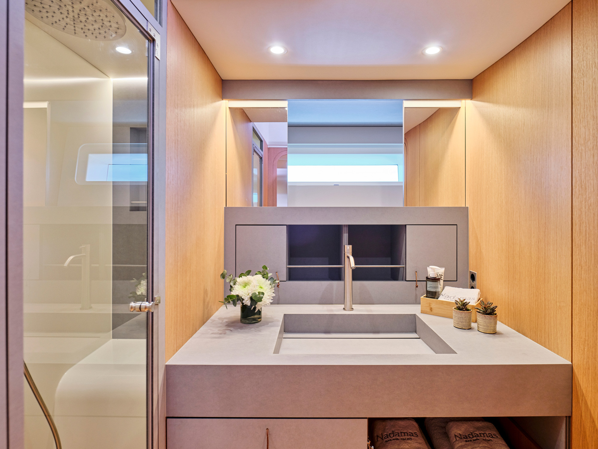 Her layout featuring 4 double cabins with en-suite facilities is ideal for 4 couples. Nadamas' luxury interior always feels bright and open as from the color pallets to the furniture her design ensures relaxed impression, while her ample sundeck is perfect for sunbathing with family and friends.