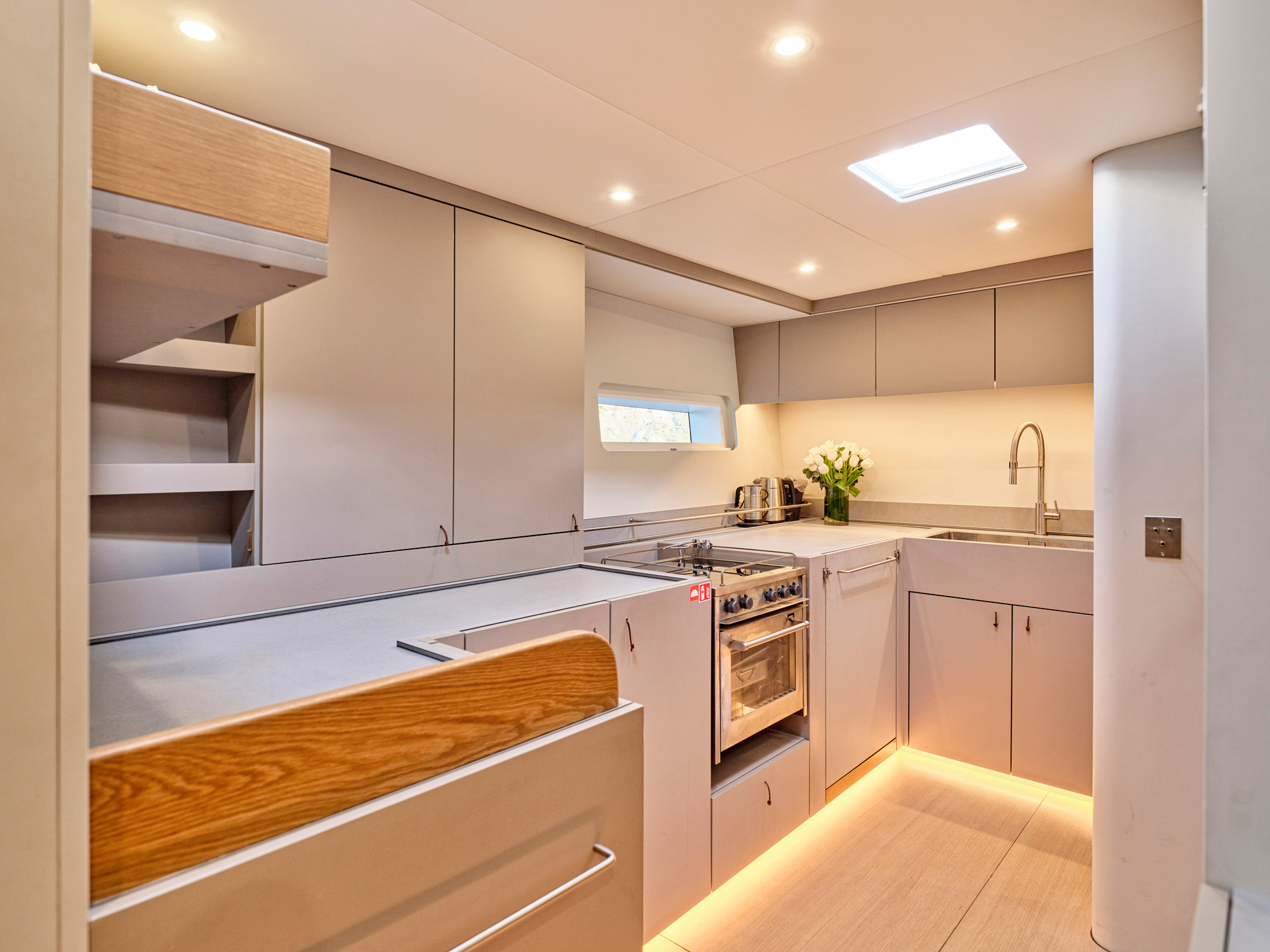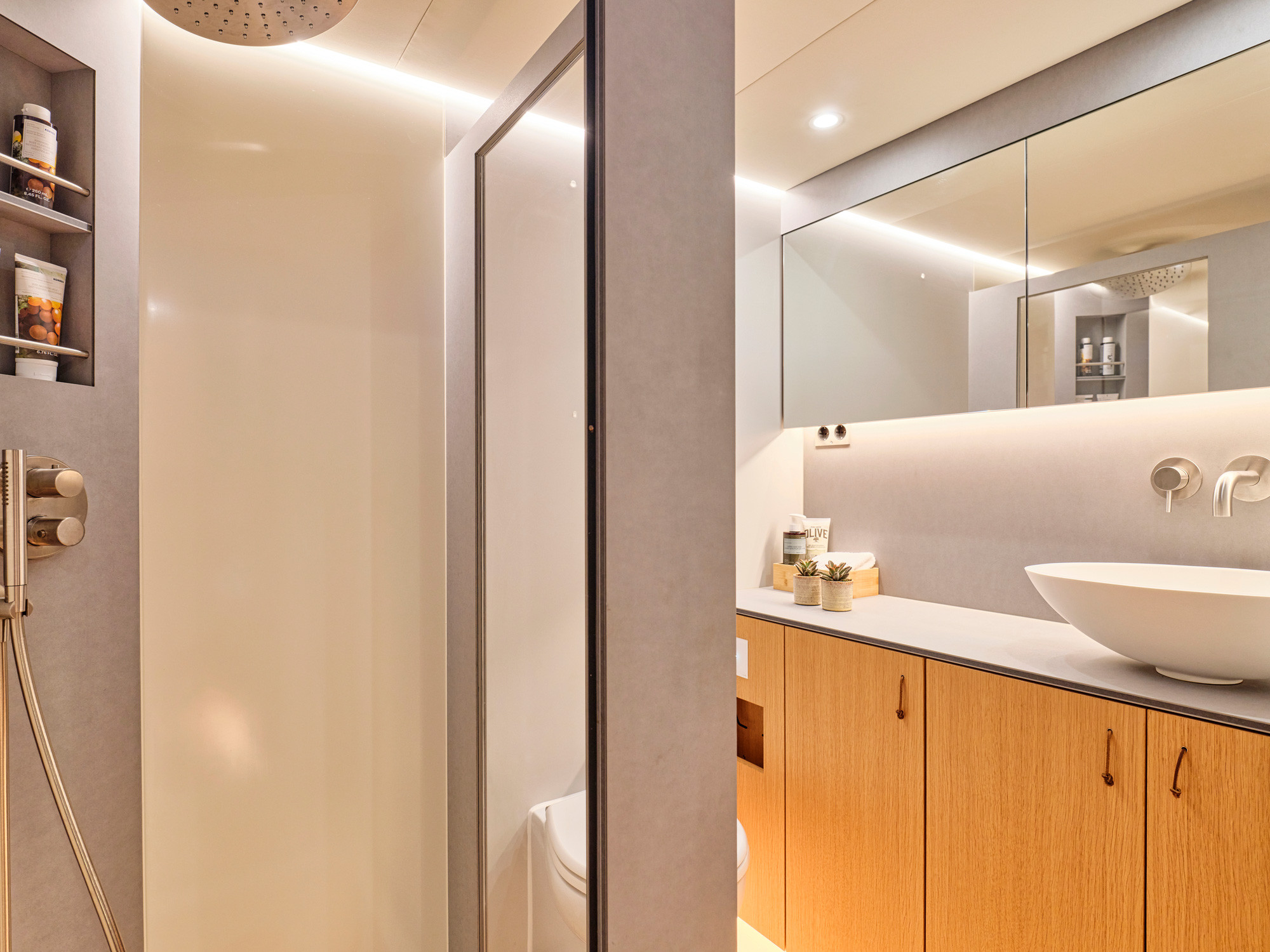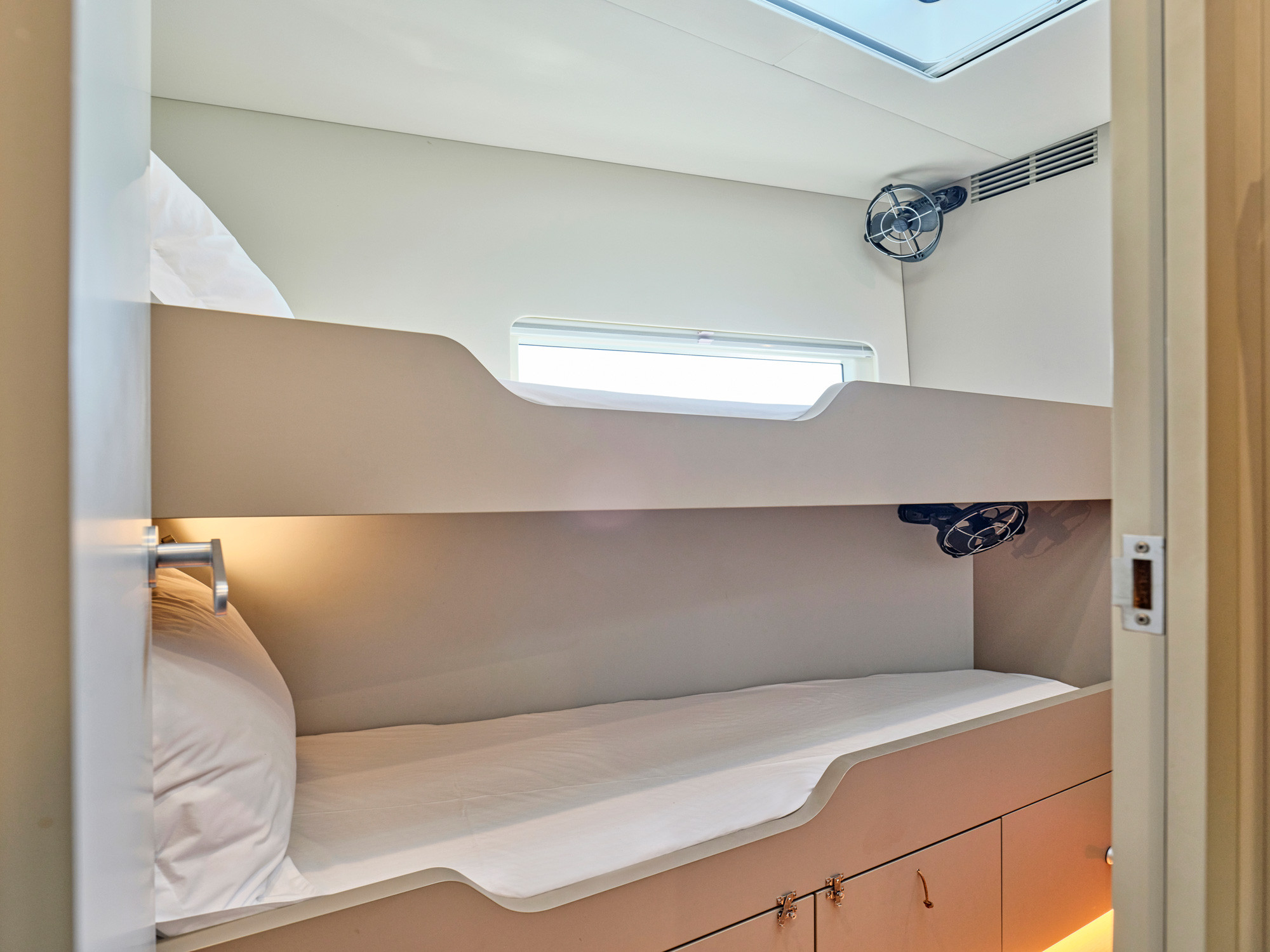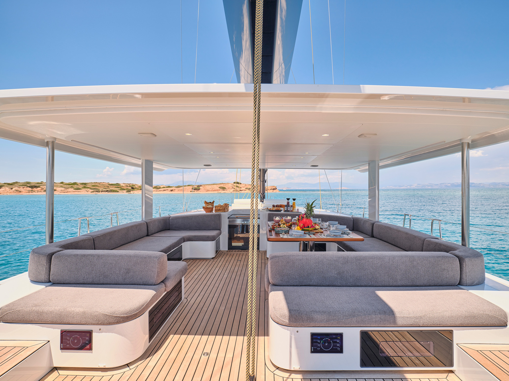 Her layout featuring 4 double cabins with en-suite facilities is ideal for 4 couples. Nadamas' luxury interior always feels bright and open as from the color pallets to the furniture her design ensures relaxed impression, while her ample sundeck is perfect for sunbathing with family and friends.